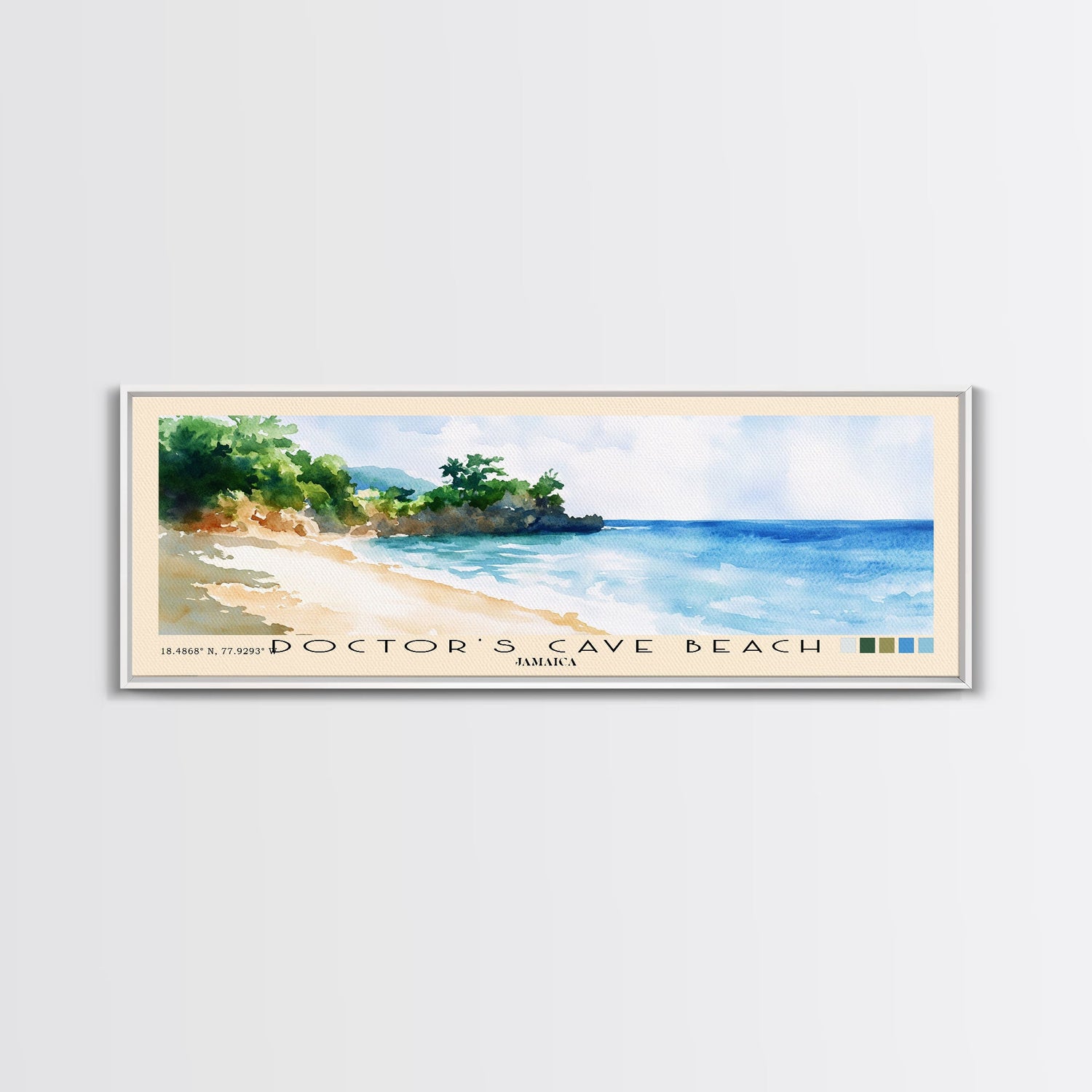 Doctor’s Cave Beach, Jamaica Watercolor Beach Print, Vacation Gift, Jamaica Wall Art, Framed Canvas Print, Framed Beach Painting - 10x30 Inches / No Frame - Stretched Canvas Only is backordered and will ship as soon as it is back in stock.