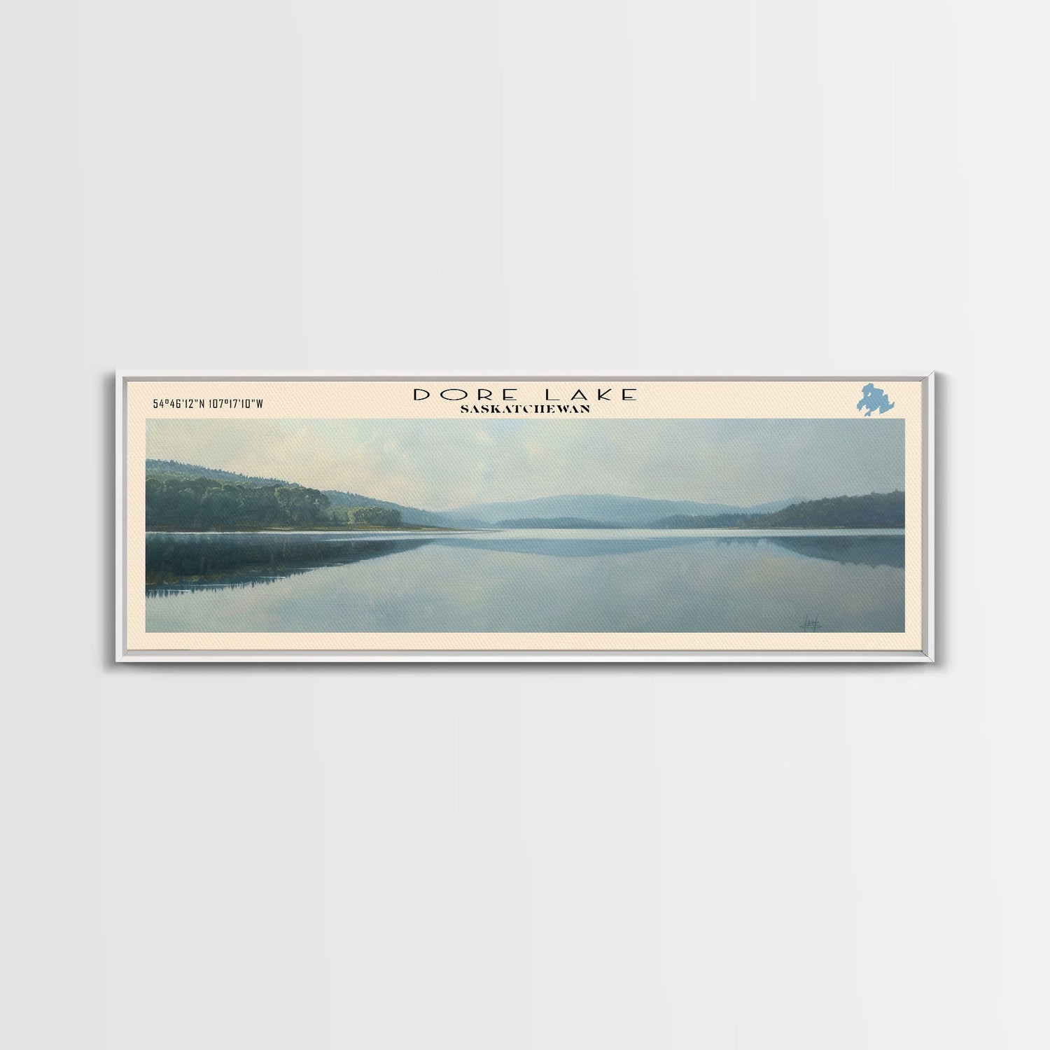Dore Lake Framed Canvas Print, Lake House Decor, Panoramic Wall Art, Travel Poster, Rustic Lake Painting, Home Decor