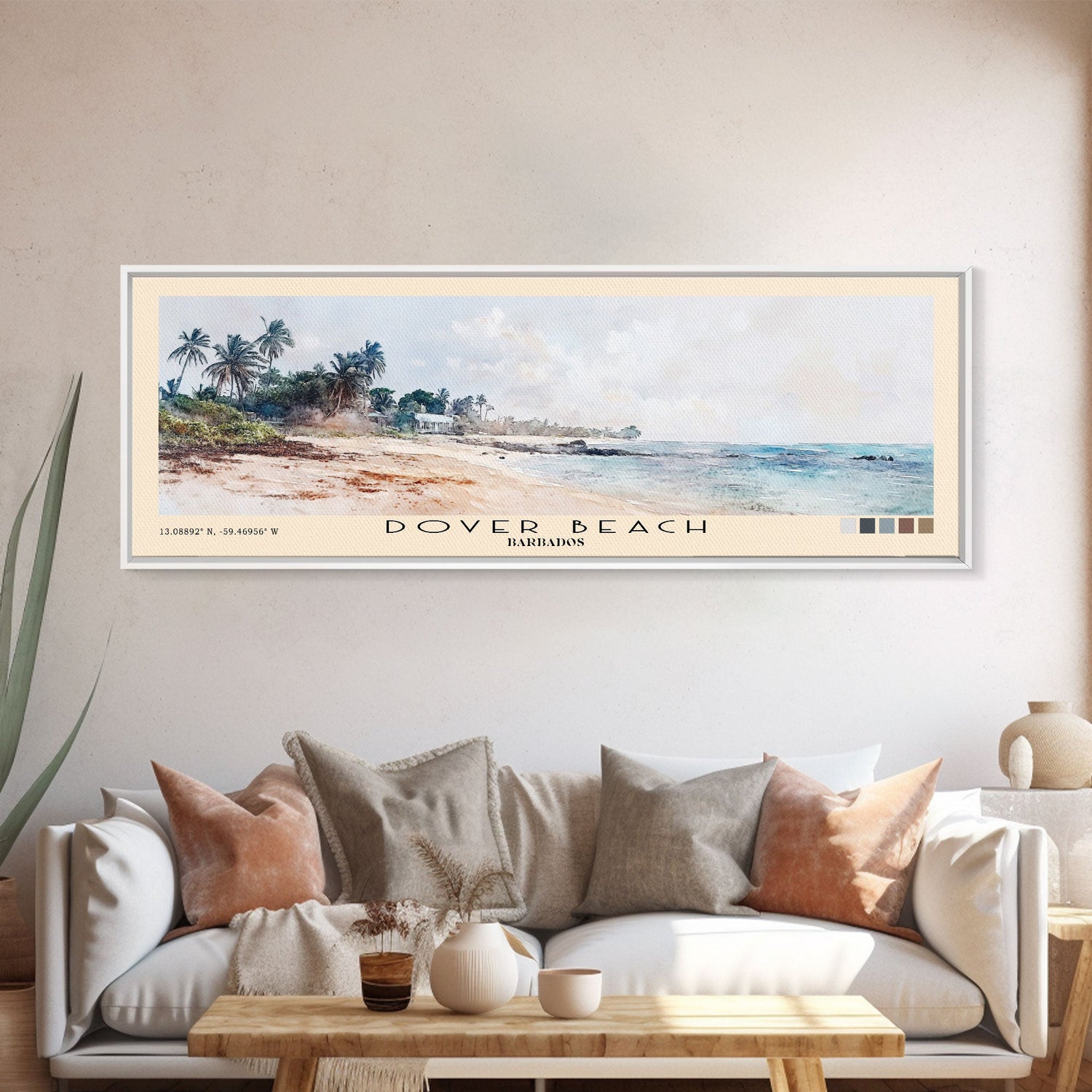 Dover Beach, Barbados Watercolor Beach Print, Vacation Gift, Barbados Wall Art, Framed Canvas Print, Framed Beach Painting - 10x30 Inches / No Frame - Stretched Canvas Only is backordered and will ship as soon as it is back in stock.
