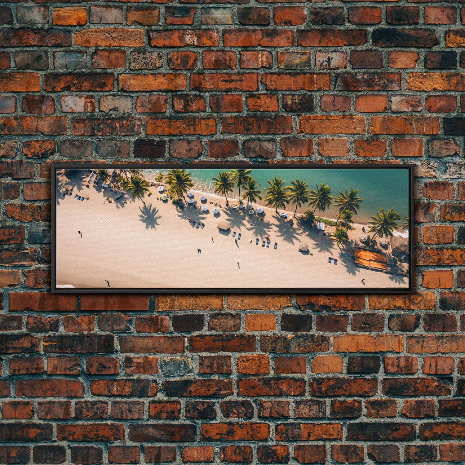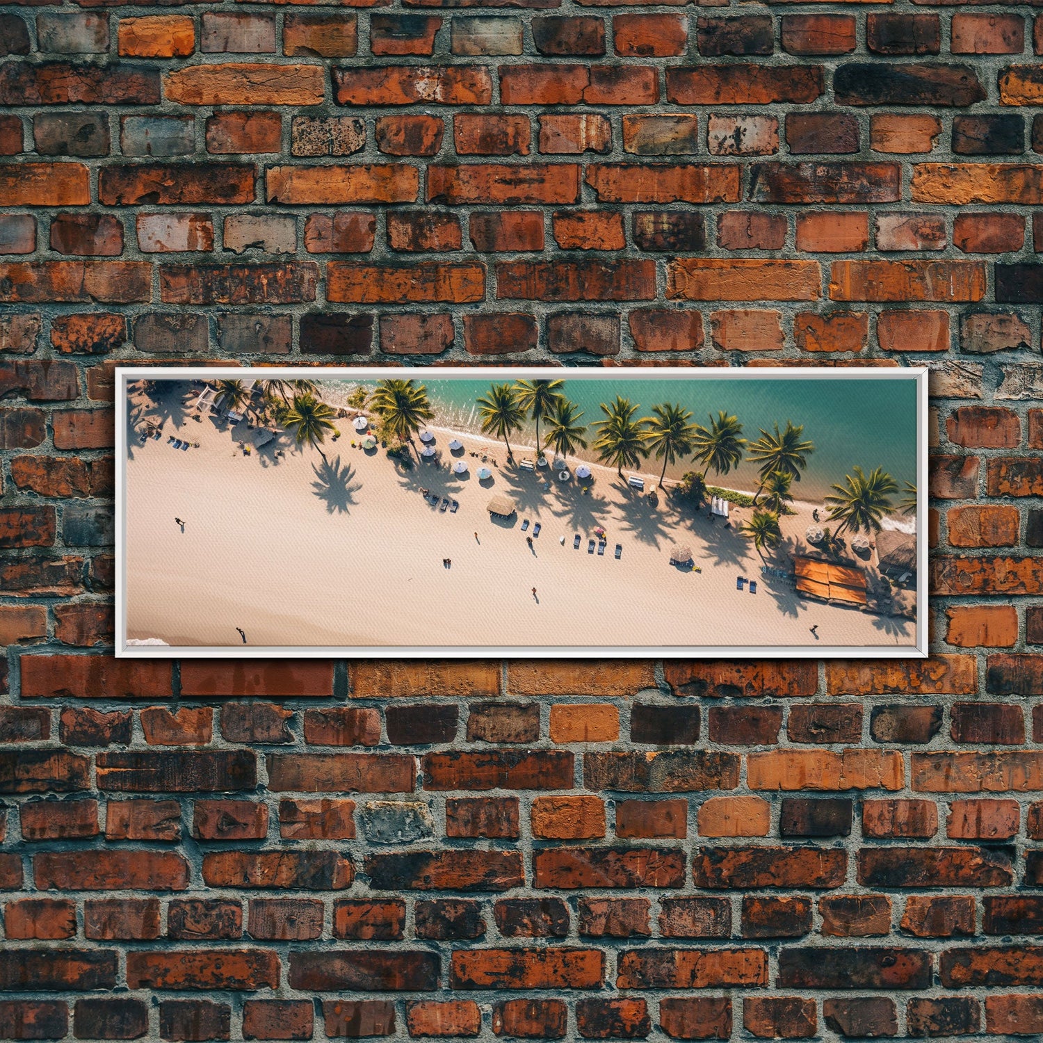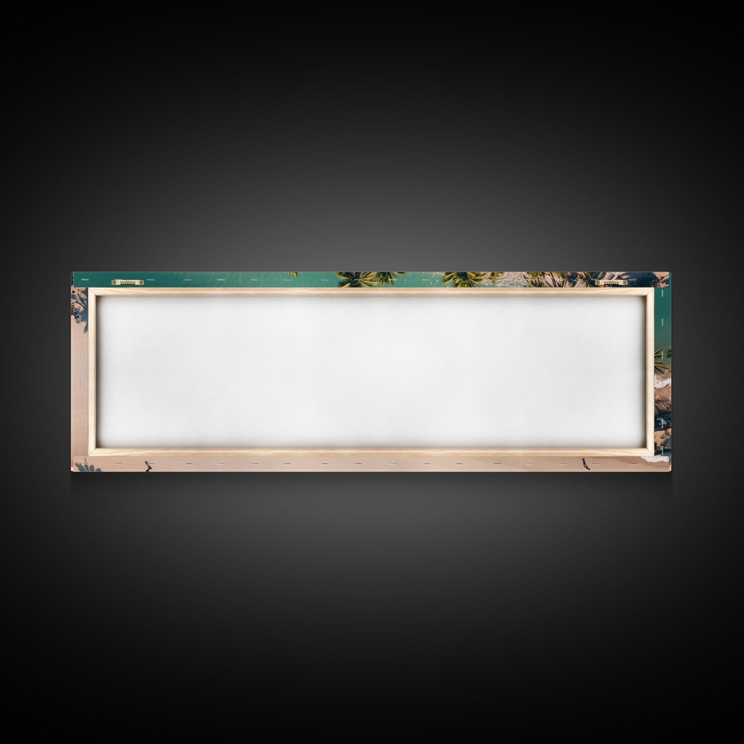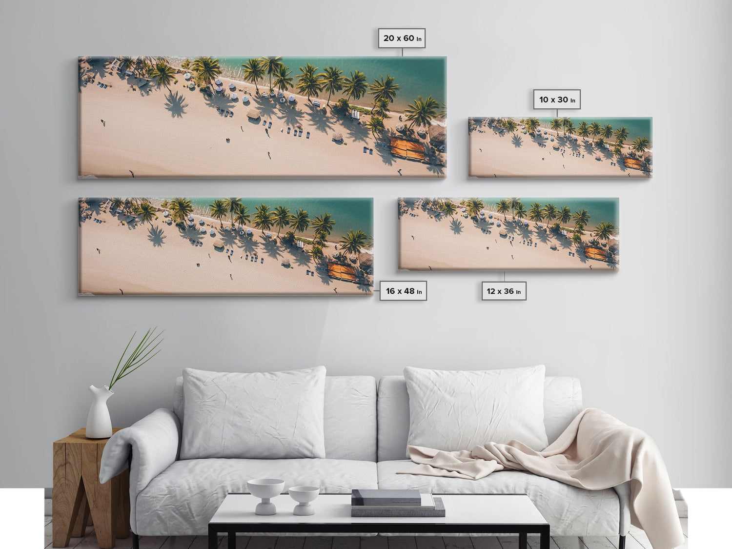 Drone Shot of Bora Bora, Vacation Art, Tropical Beach Photography Framed Canvas Print, Panoramic Bird's Eye View of Paradise - 10x30 Inches / No Frame - Stretched Canvas Only is backordered and will ship as soon as it is back in stock.