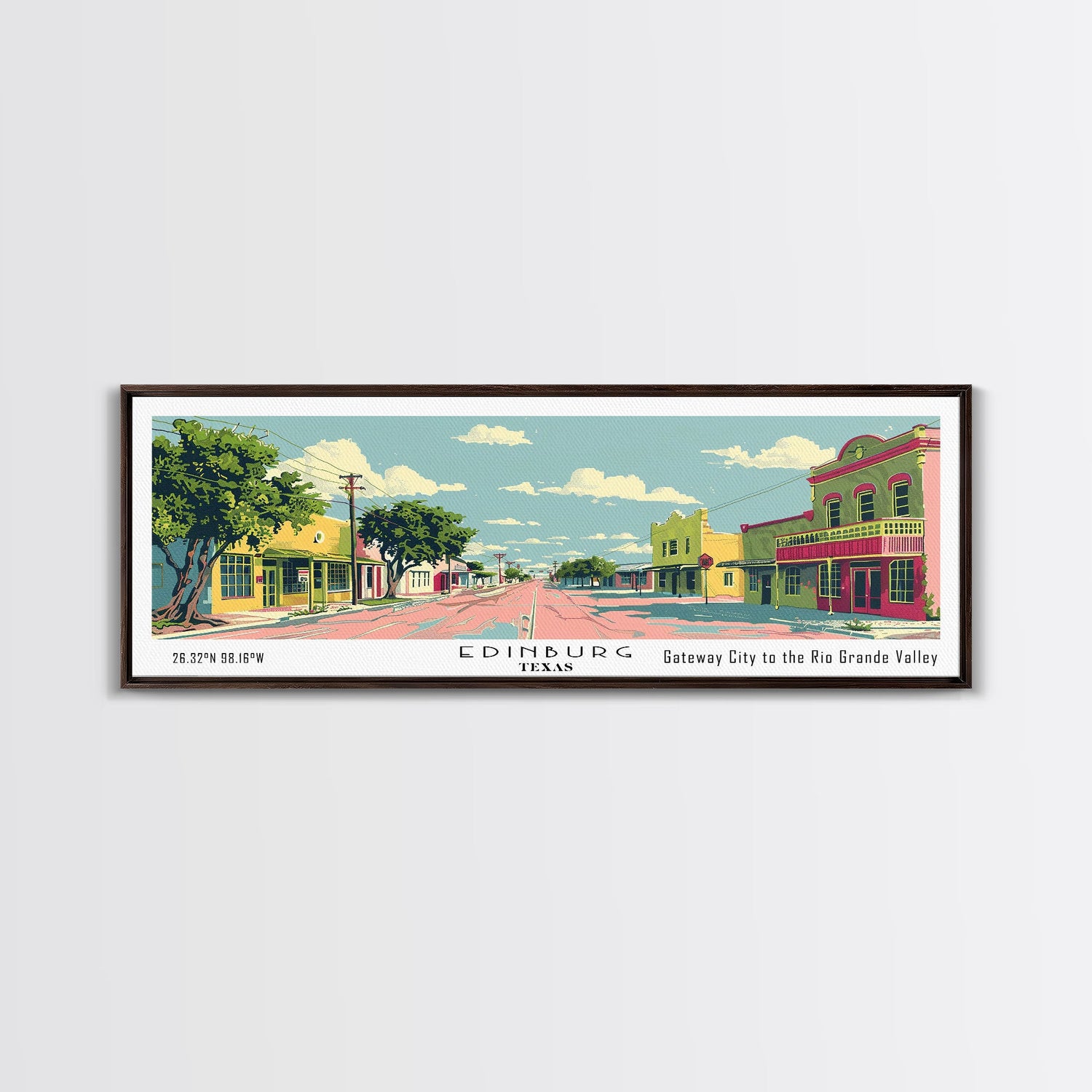 Edinburg Texas Panoramic Wall Art, Mid Century Modern Framed Canvas Print, Retro Pop Art Travel Poster, City Office Art, Living Room Decor