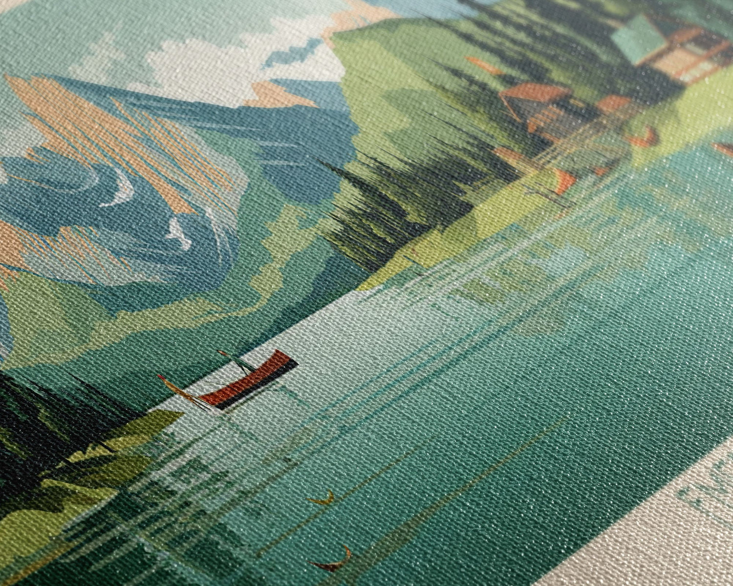 Emerald Lake Colorado Framed Canvas Print, Panoramic Art, Midcentury Modern, Pop Art, Living Room Wall Art, Travel Poster, Lake Art - 10x30 Inches / Gallery Wrap Canvas - Ready To Hang is backordered and will ship as soon as it is back in stock.