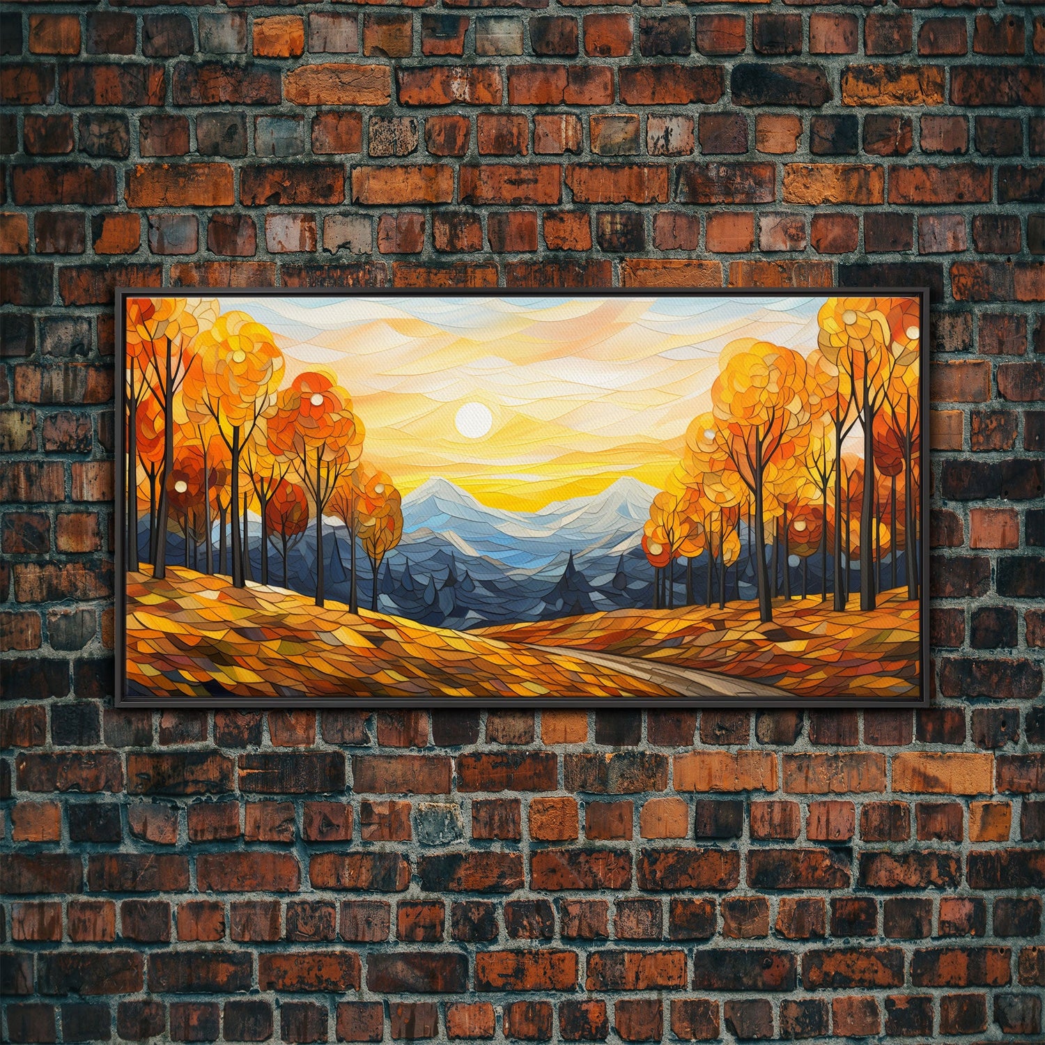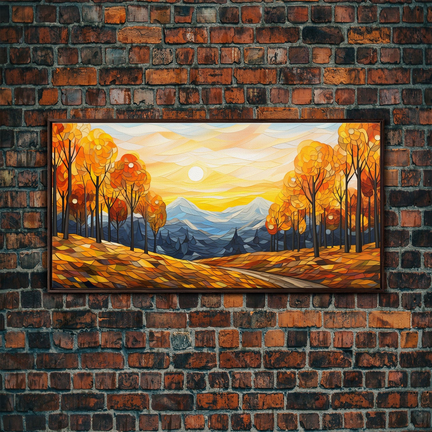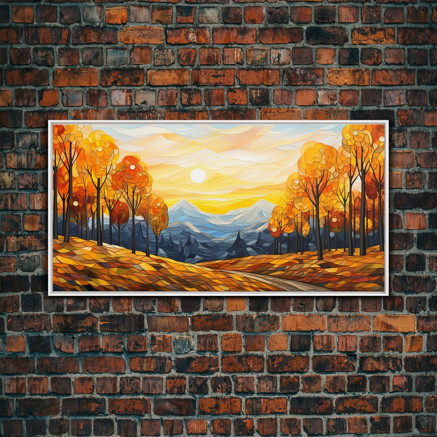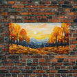 Fall Trees, Autumn Wall Art, Abstract Nature Painting, Sunset Art, College Dorm Decor, Camper Wall Decor, Canvas Wall Art, Panoramic Art