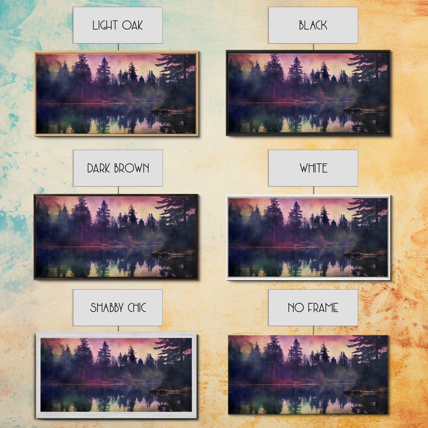 *Optional frames add a total of 1.5 inches to each dimension, for instance, a 10x20 canvas with a frame will be 11.5 by 21.5 inches total. All framed canvases are 1.5" total depth.