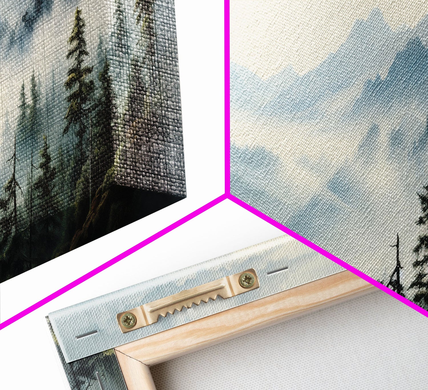 Foggy Mountain Forest Canvas Print, Oil Landscape Painting On Canvas - Ready To Hang Large Panoramic Canvas Wall Art Prints, Framed Wall Art