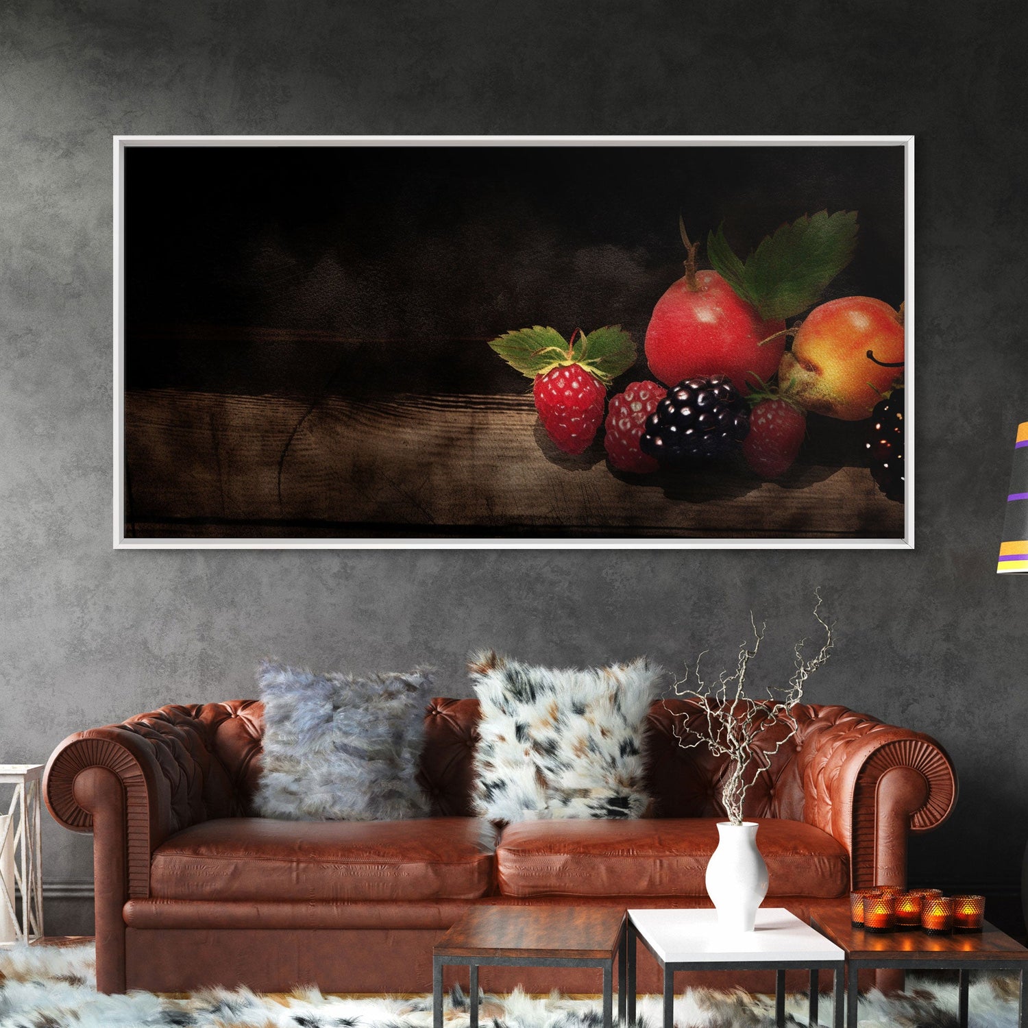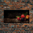 Fruits Wall Art, Food Art, Strawberries, Peach, Kitchen Wall Decor, Panoramic Wall Decor, Canvas Print, Wall Art, Framed Canvas Art
