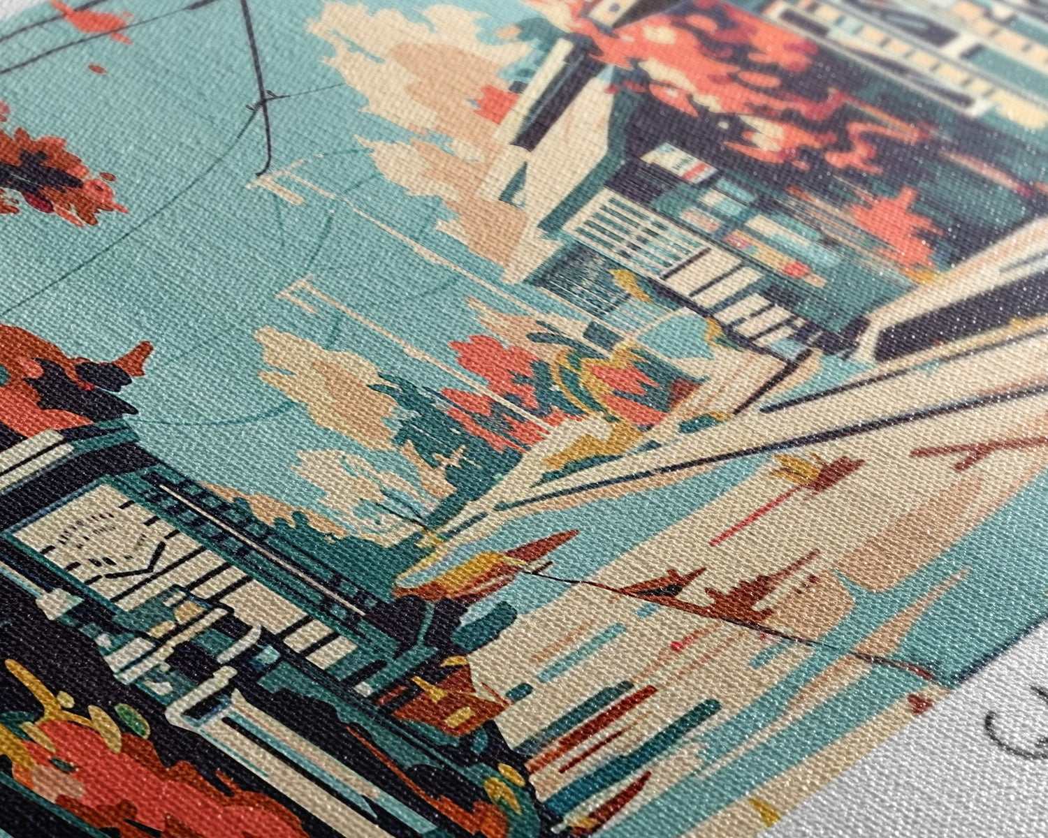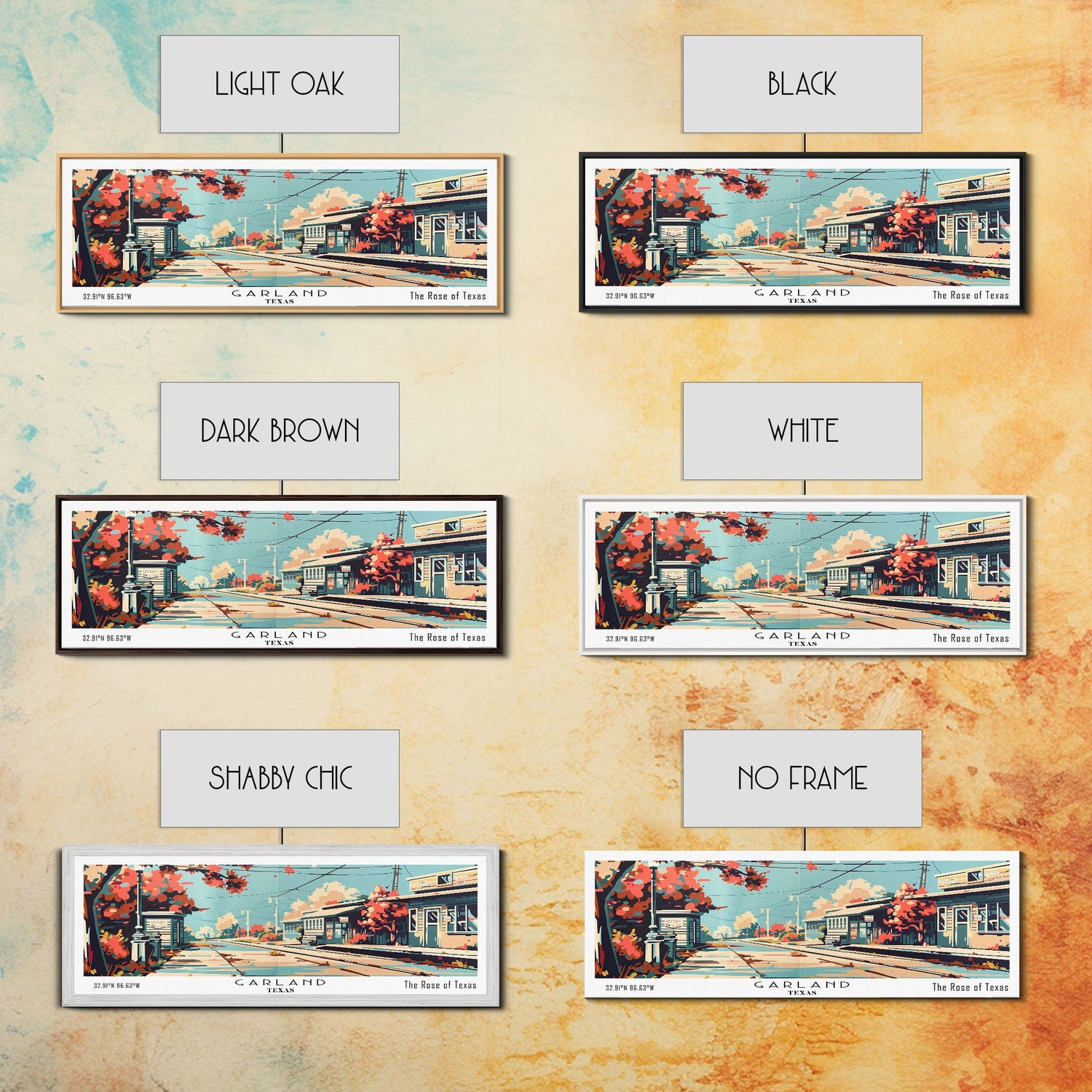 Garland Texas Panoramic Painting, Mid Century Modern Framed Canvas Print, Retro Pop Art Travel Poster, Wall Art, Home Decor, Office Art