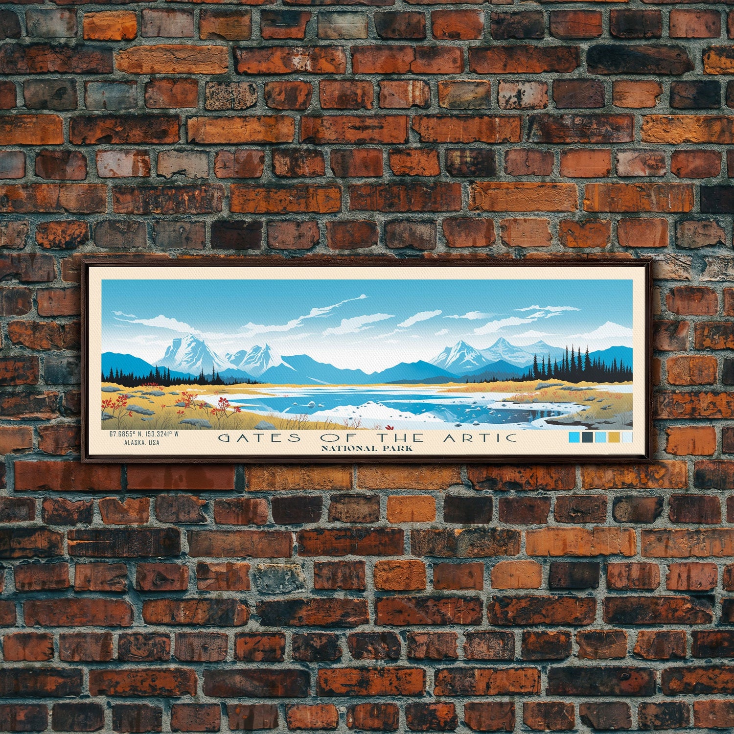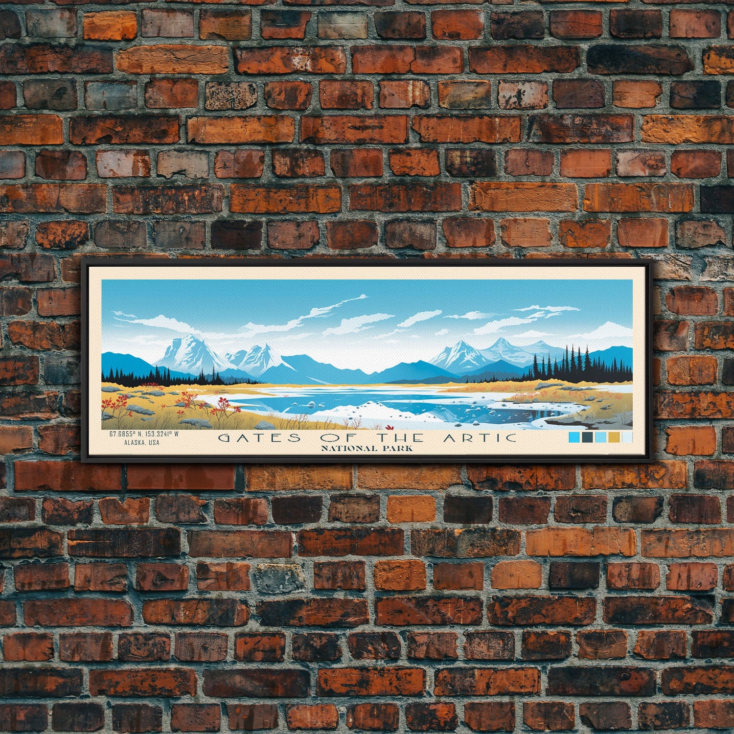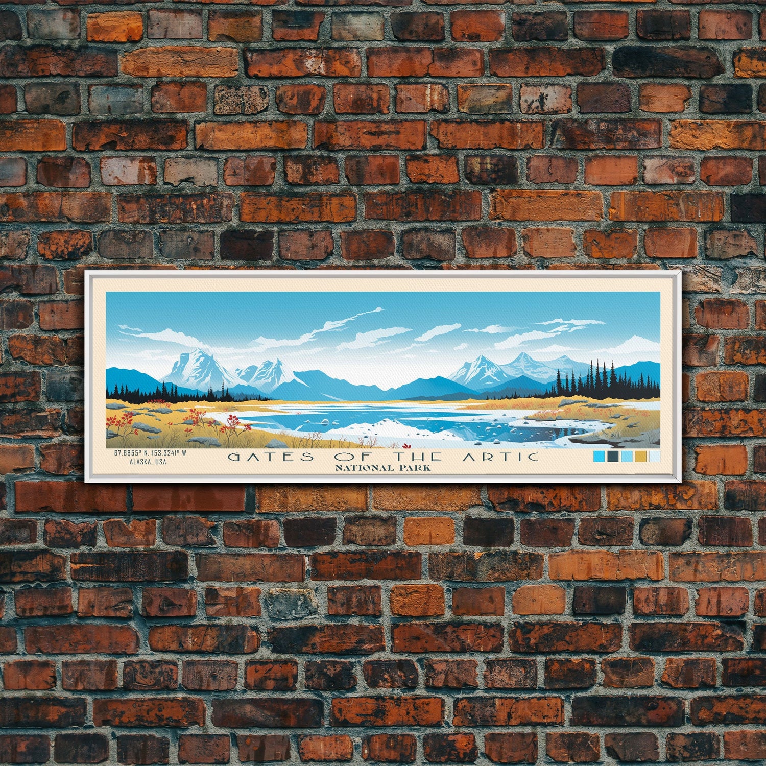 Gates Of The Arctic National Park Panoramic Alaska Travel Art, National Park Print, Minimalist Travel Art, Midcentury Modern Style Landscape - 10x30 Inches / No Frame - Stretched Canvas Only is backordered and will ship as soon as it is back in stock.