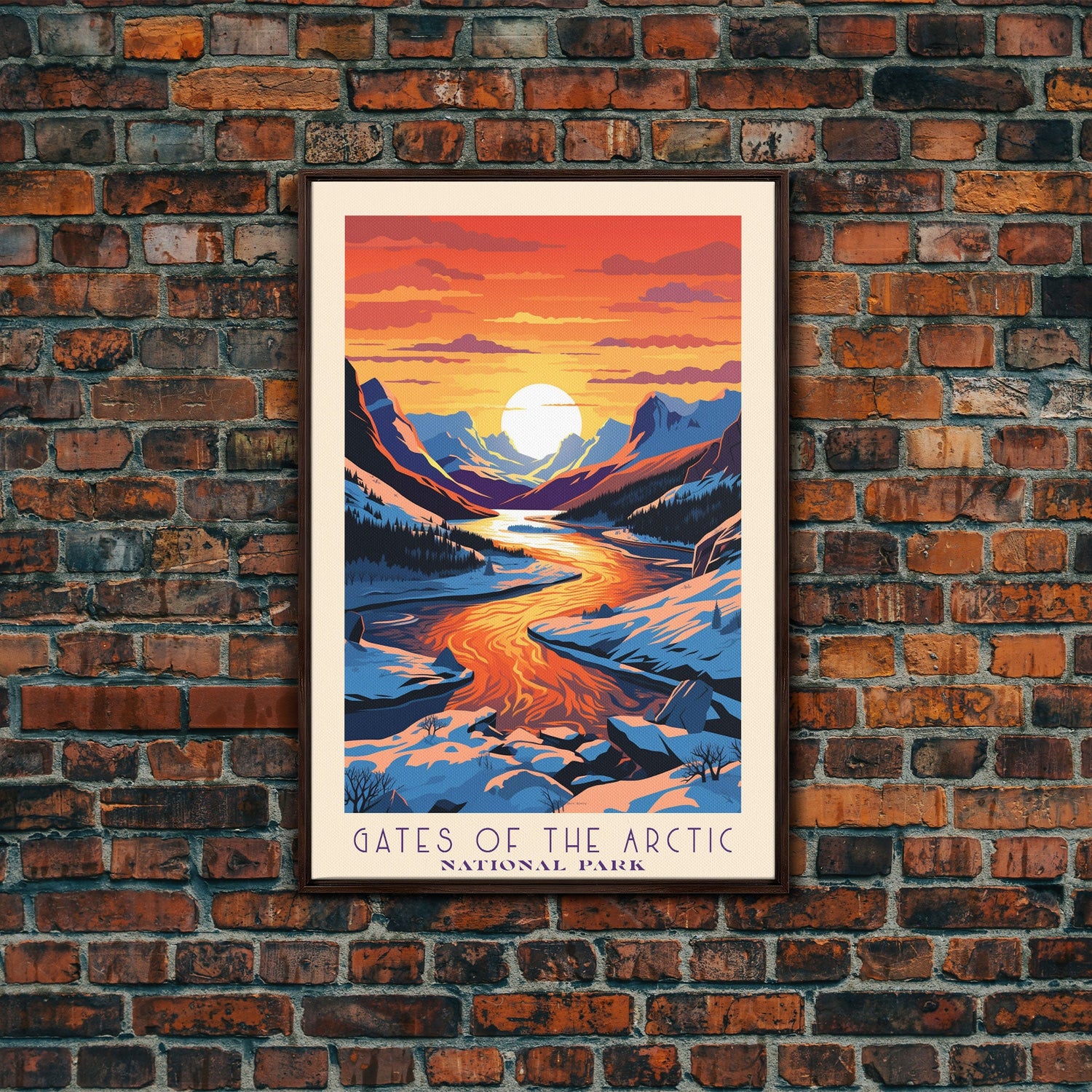 Gates of the Arctic National Park Travel Poster Art, Canvas Print Wall Art, Alaska Travel Art, Midcentury Modern Travel Decor, MCM Wall Art