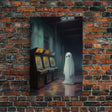 Ghost in an Abandoned Arcade, Nostalgia Canvas, Art Canvas Print, Dark Academia, Gothic Retro, Game Room Art, Halloween Decoration