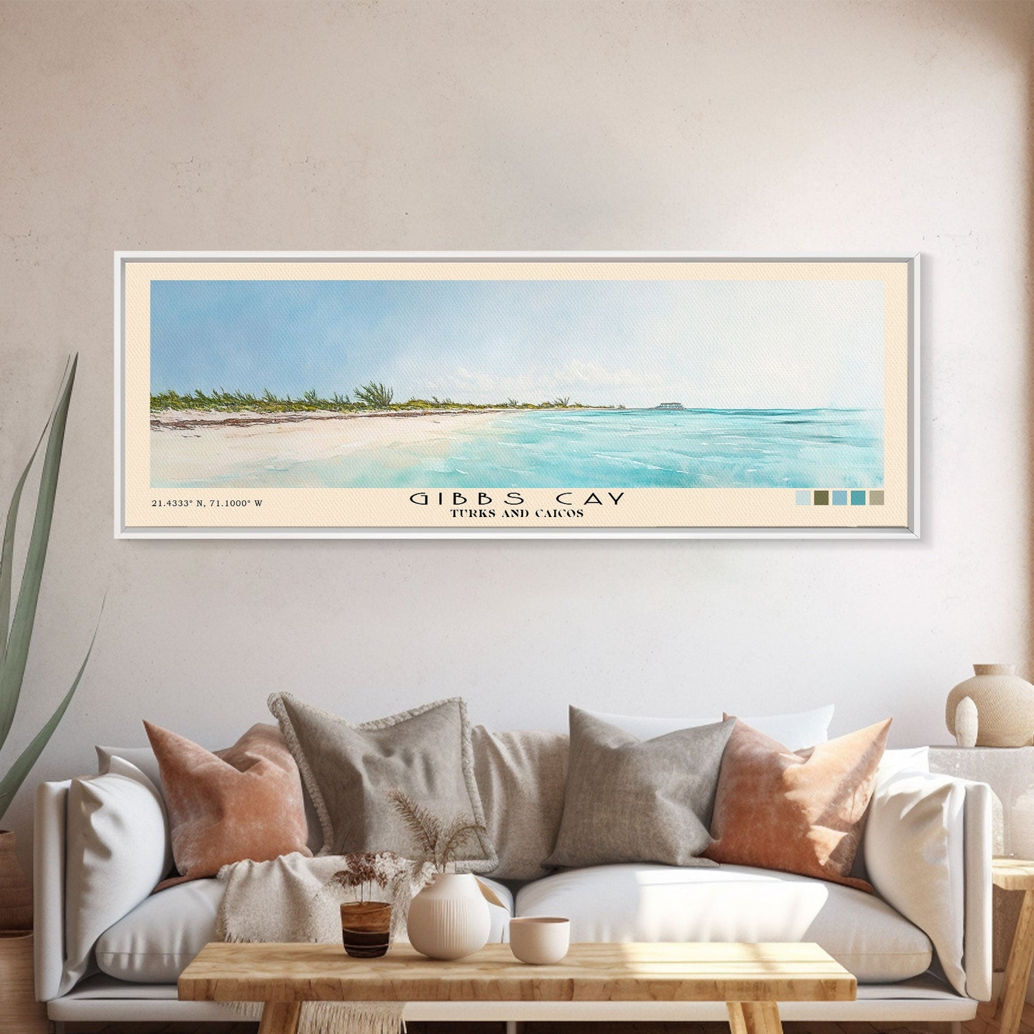 Gibbs Cay, Turks and Caicos Watercolor Beach Print, Vacation Gift, Turks and Caicos Wall Art, Framed Canvas Print, Framed Beach Painting - 10x30 Inches / No Frame - Stretched Canvas Only is backordered and will ship as soon as it is back in stock.
