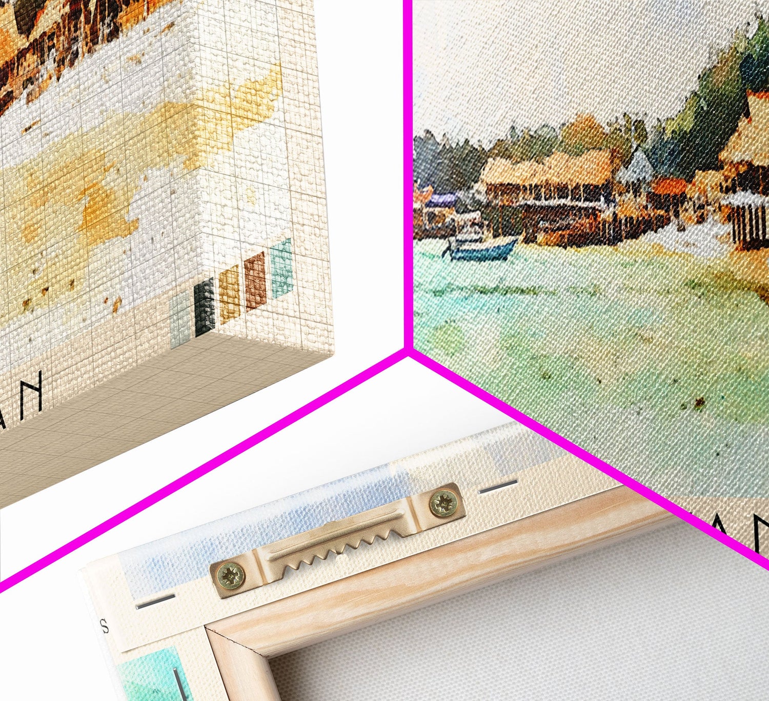 Gili Trawangan, Indonesia Watercolor Beach Print, Vacation Gift, Indonesia Wall Art, Framed Canvas Print, Framed Beach Painting