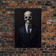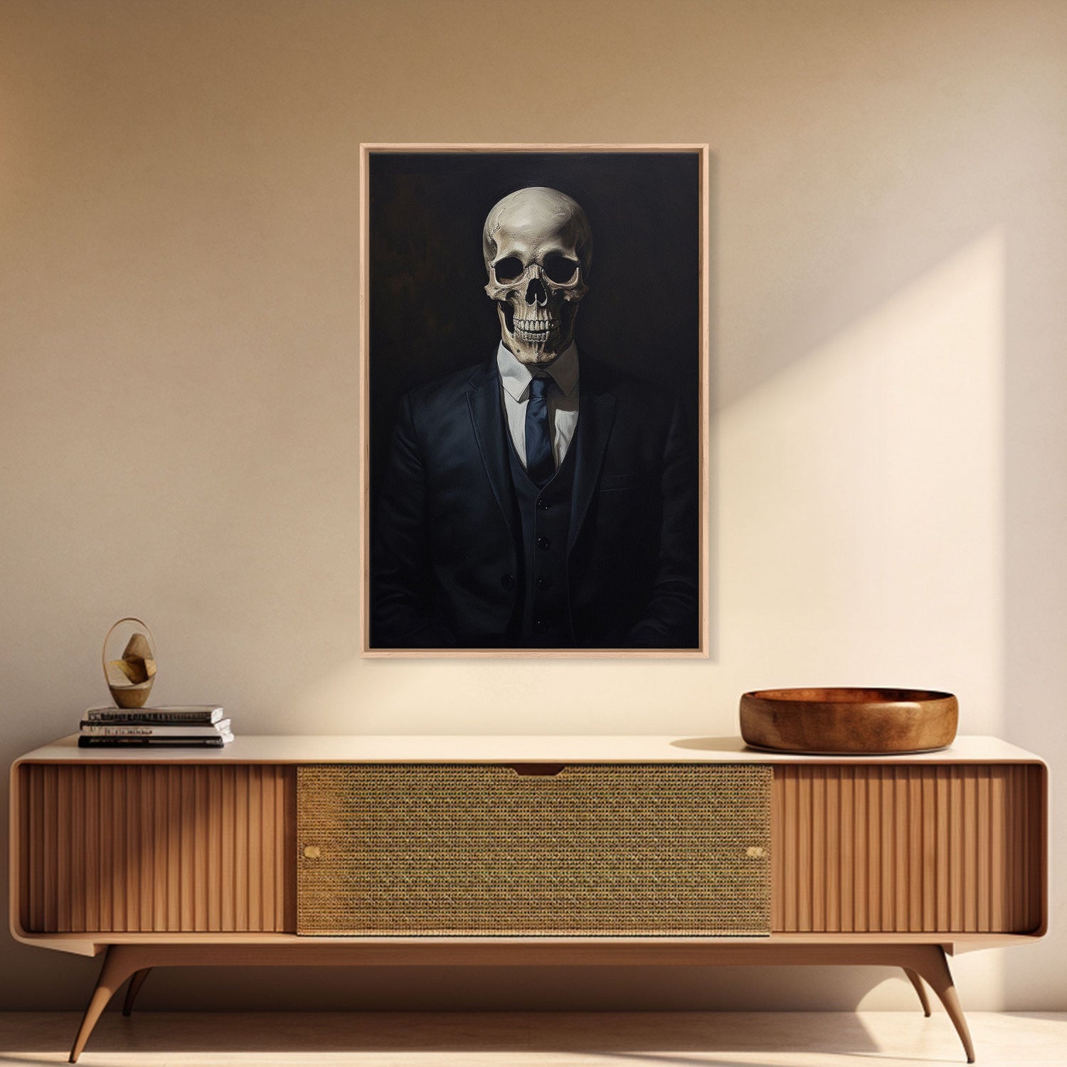Gothic Victorian Skeleton Portrait, Framed Canvas Print, Halloween Art, Oil Painting, Halloween Canvas