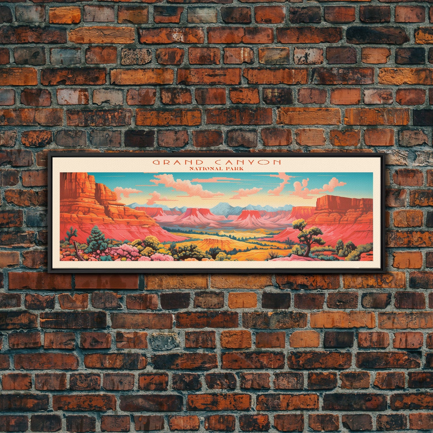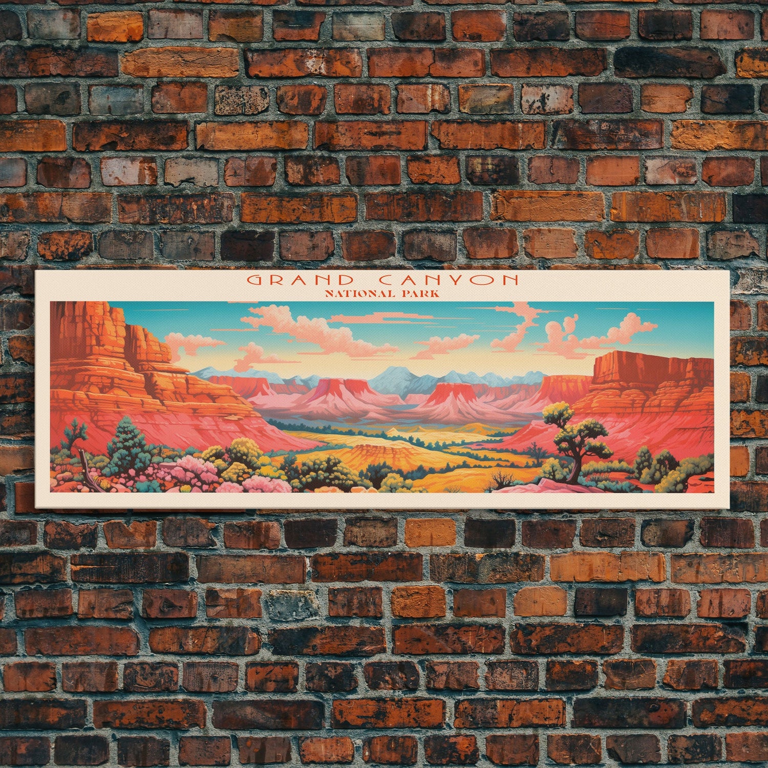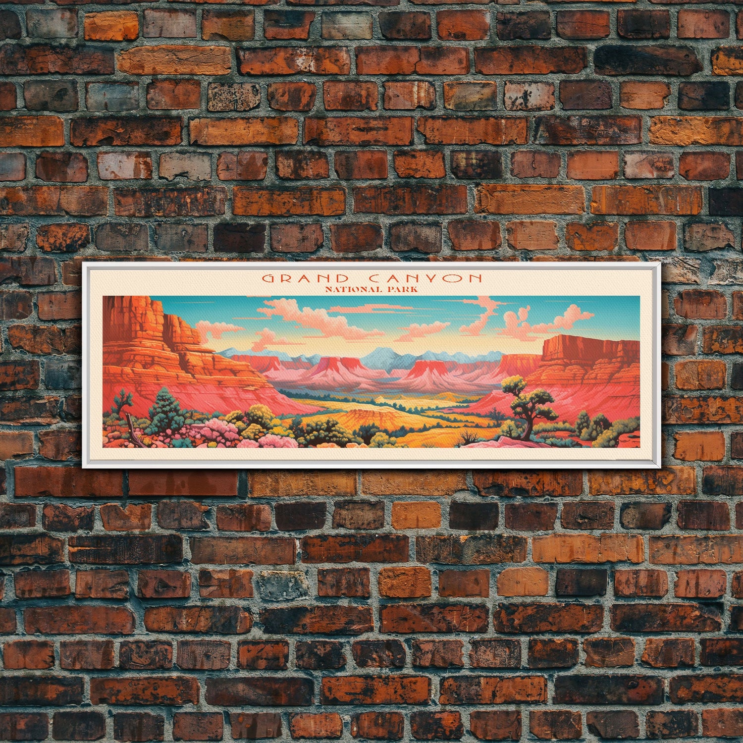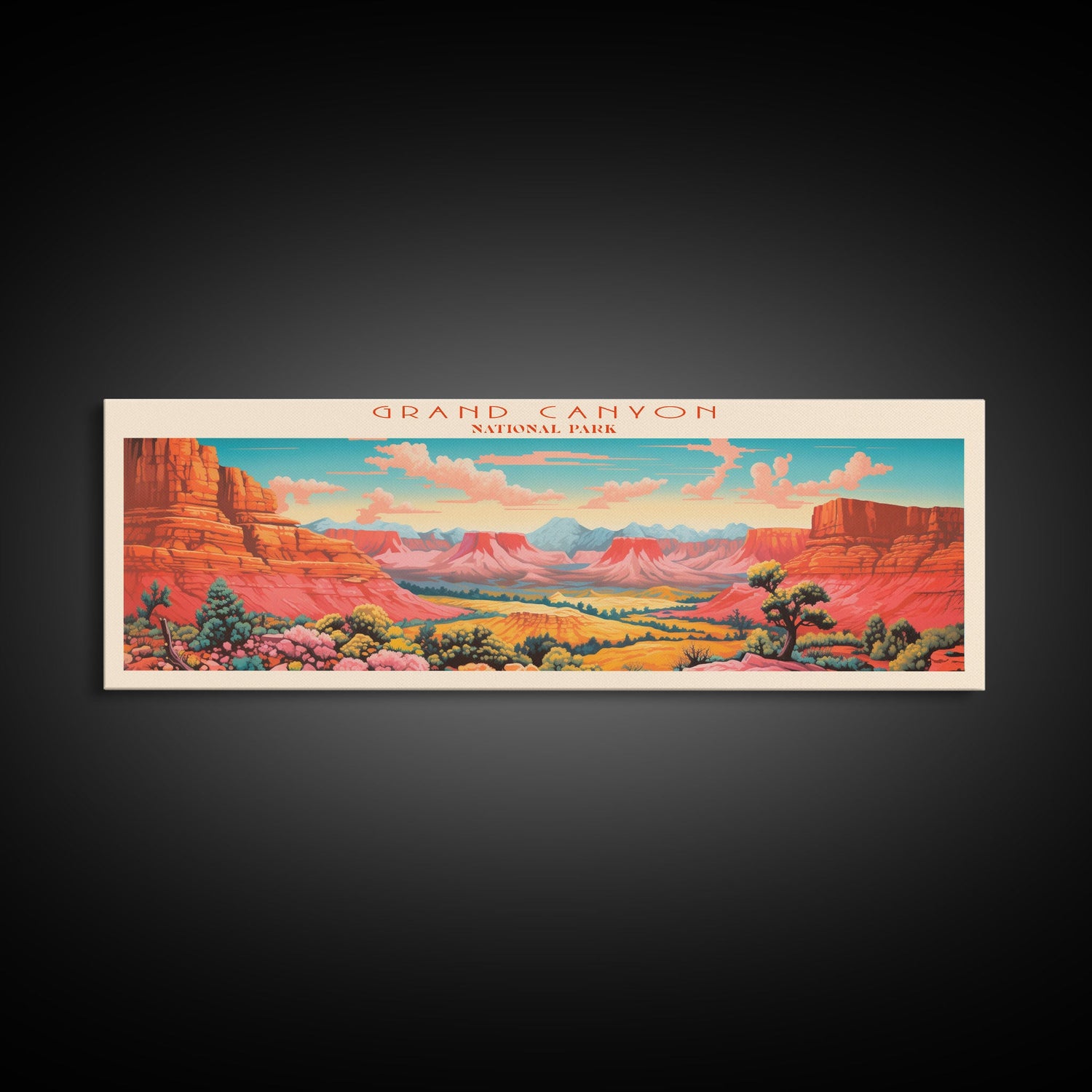 Grand Canyon National Park, Panoramic Arizona Travel Art, National Park Print, Minimalist Travel Art, Midcentury Modern Style Landscape - 10x30 Inches / No Frame - Stretched Canvas Only is backordered and will ship as soon as it is back in stock.