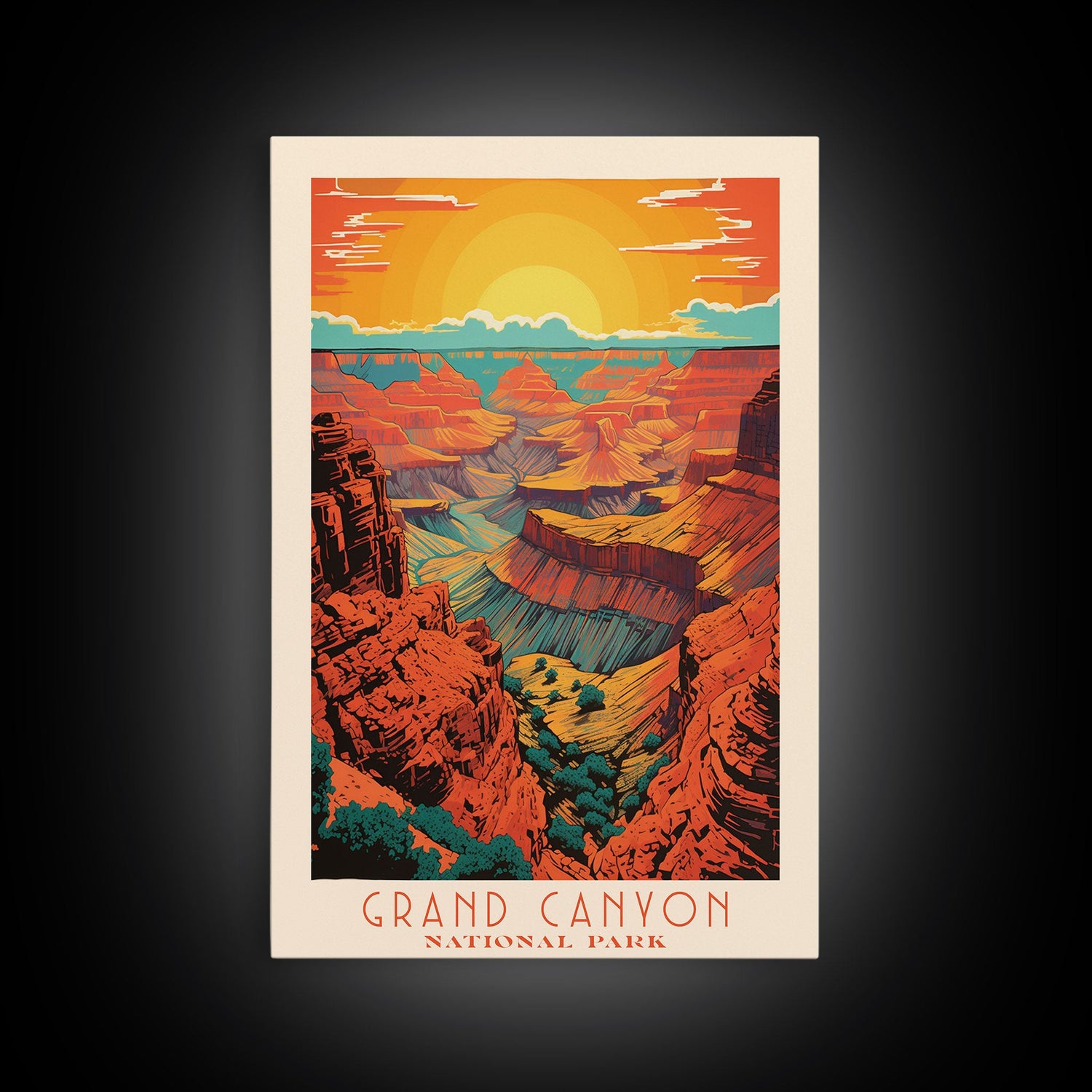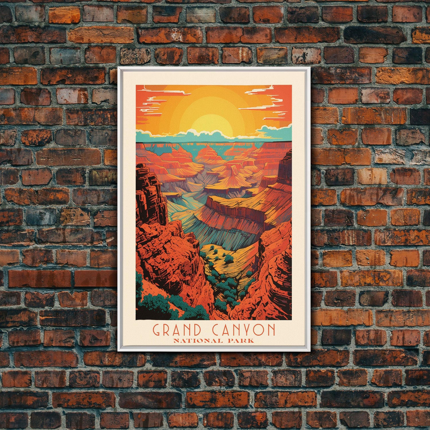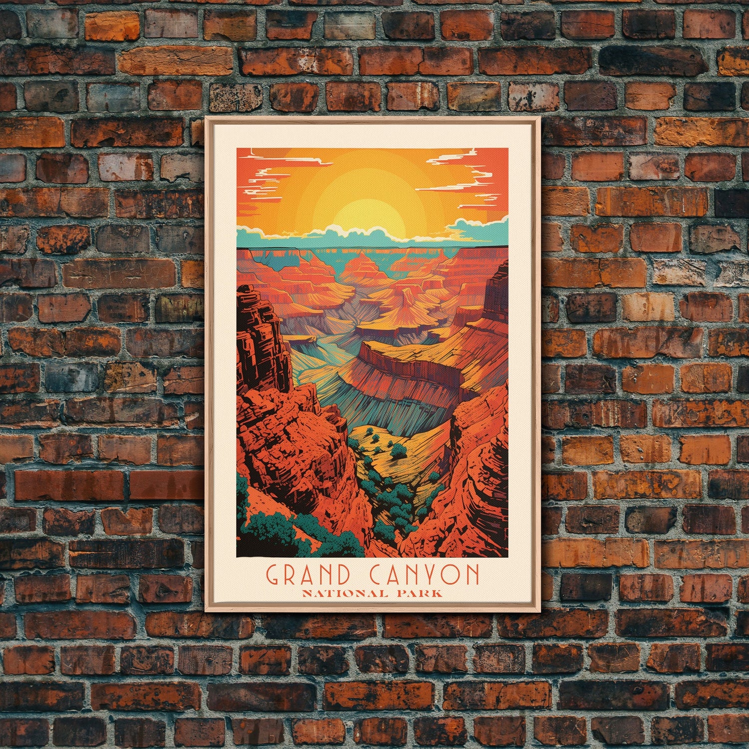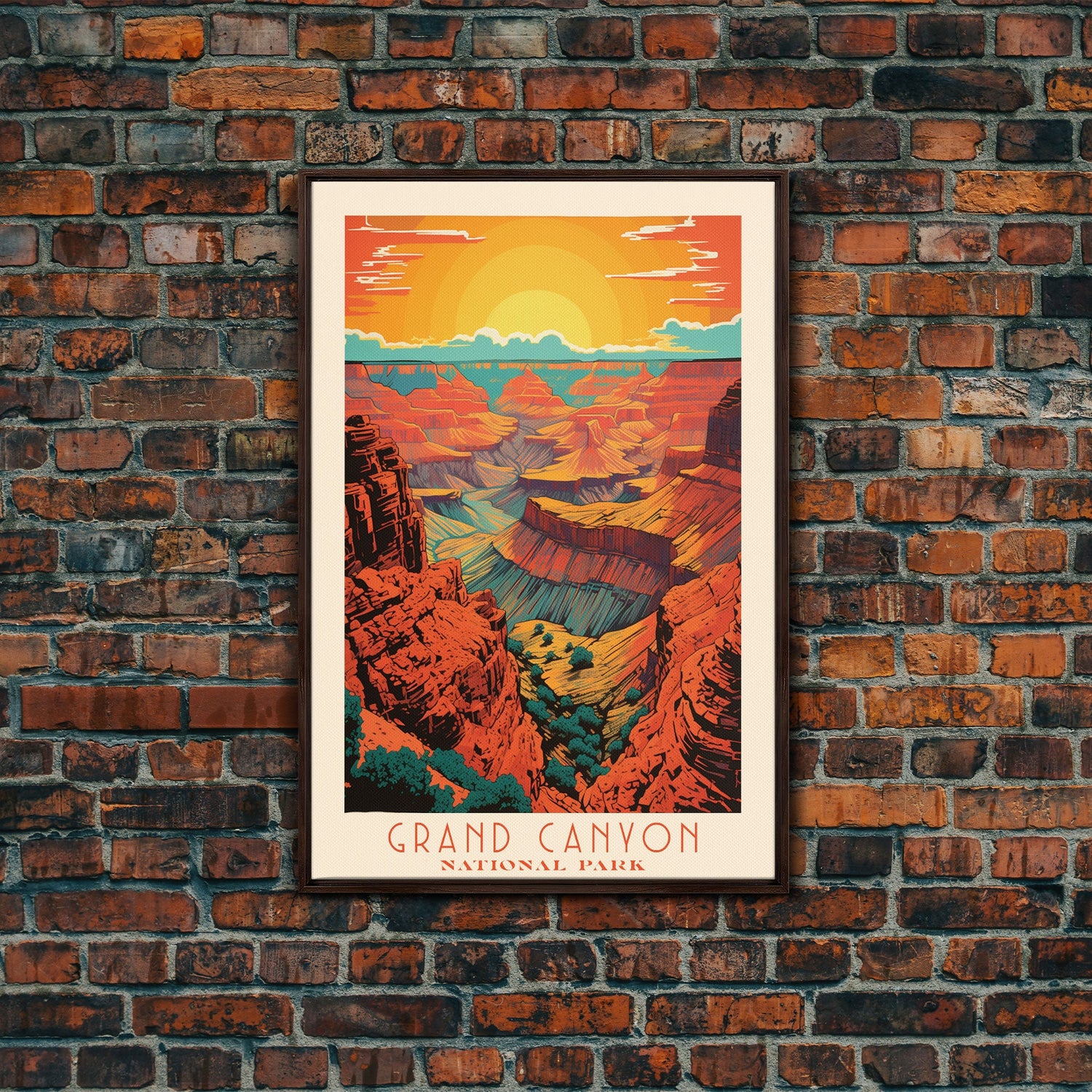 Grand Canyon National Park Travel Poster Art, Canvas Print Wall Art, Arizona Travel Art, Midcentury Modern Travel Decor, MCM Wall Art - 8x12 Inches / No Frame - Stretched Canvas Only is backordered and will ship as soon as it is back in stock.