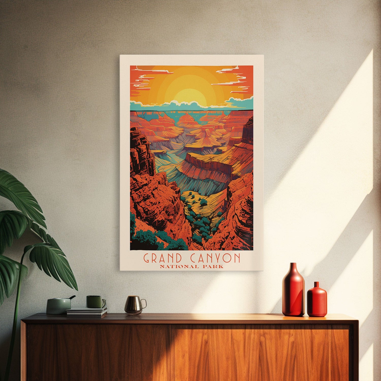Grand Canyon National Park Travel Poster Art, Canvas Print Wall Art, Arizona Travel Art, Midcentury Modern Travel Decor, MCM Wall Art