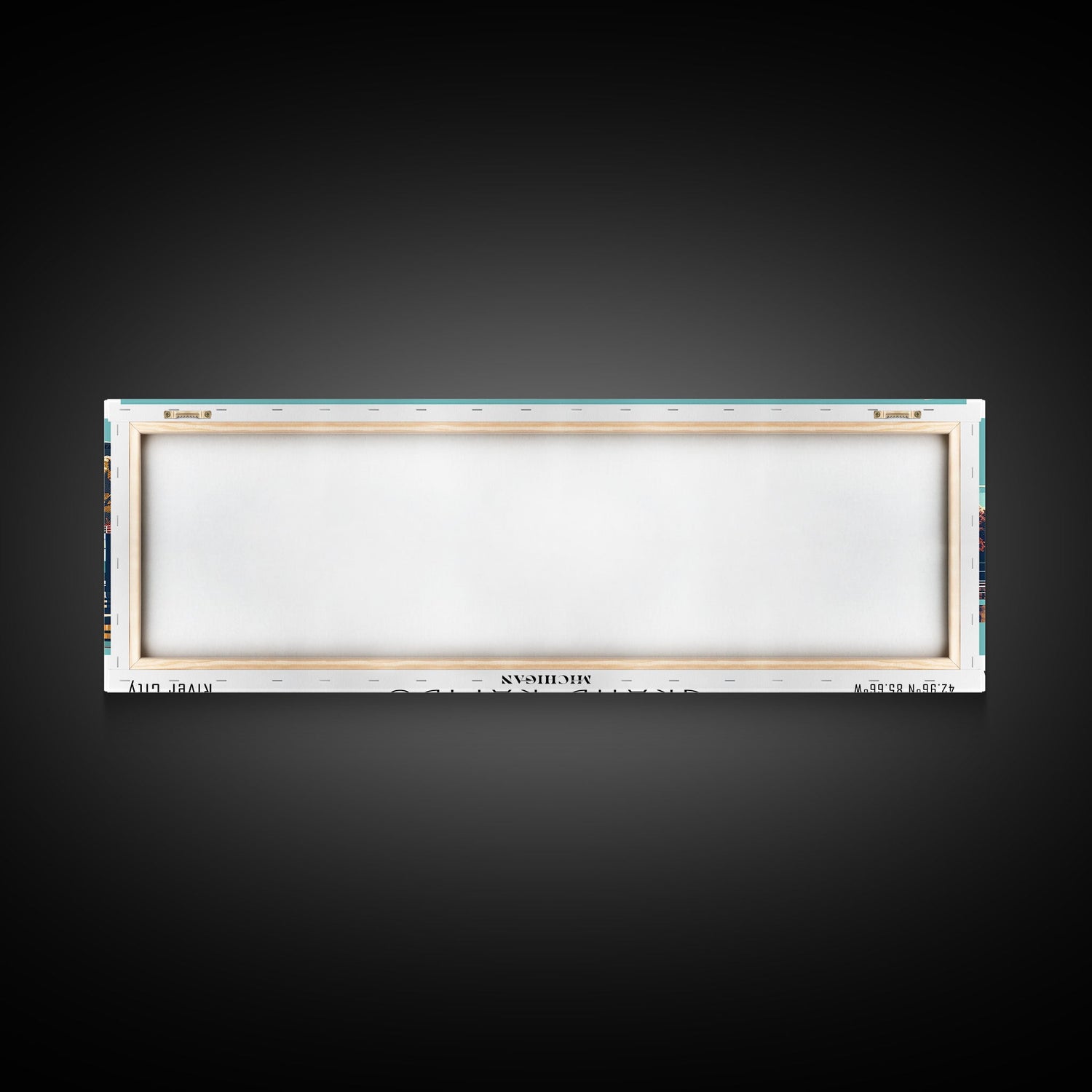 Grand Rapids Michigan Panoramic Painting, Framed Canvas Print, Mid Century Modern Wall Art, Retro Pop Art Travel Poster, Cityscape Decor, Living Room Art, Office Wall Art - 10x30 Inches / Gallery Wrap Canvas - Ready To Hang is backordered and will ship as soon as it is back in stock.