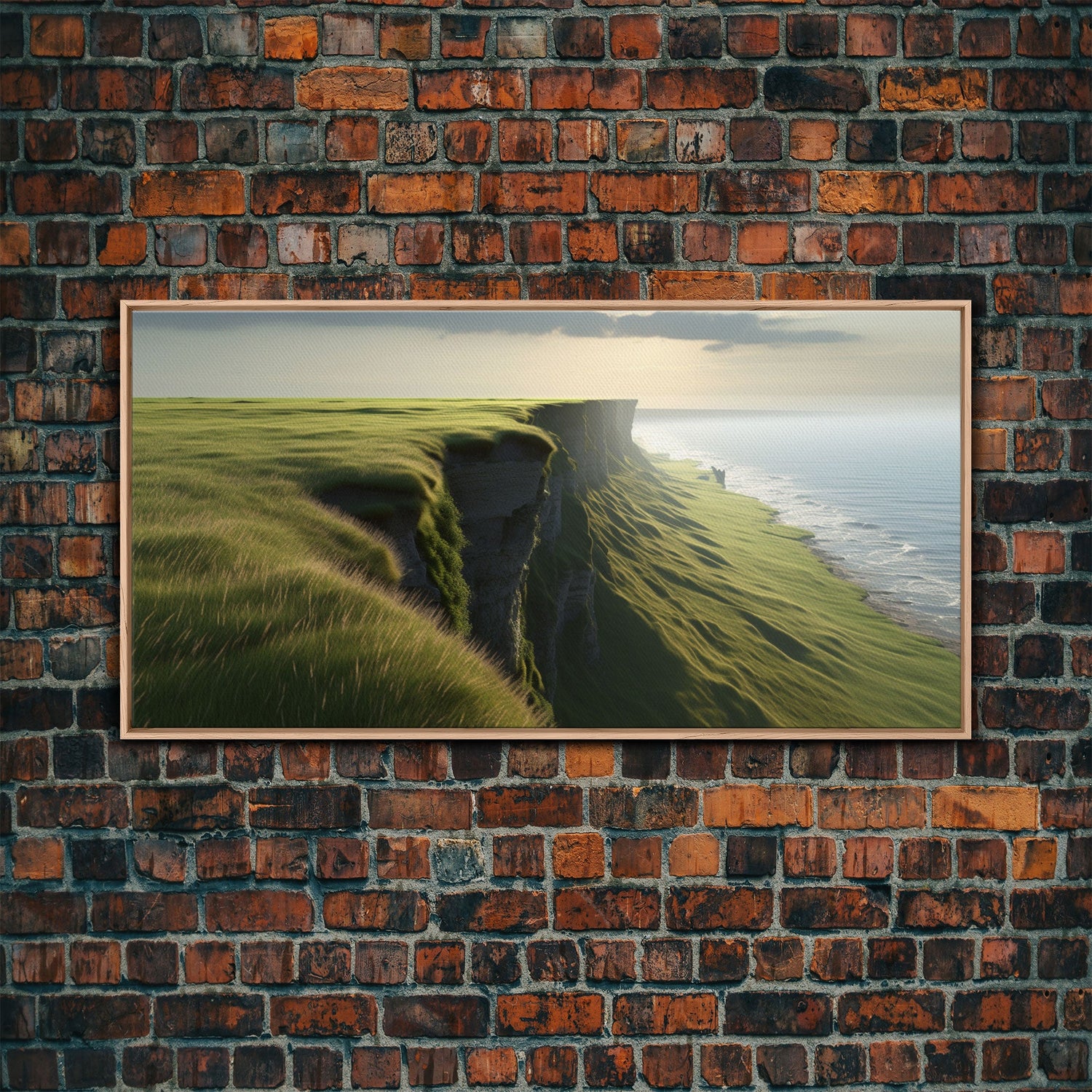 Grassy Cliff Wall Decor, Ocean Wall Art, Nature Wall Decor, Large Wall Art, Panoramic Wall Decor, Canvas Print, Wall Art, Framed Canvas Art