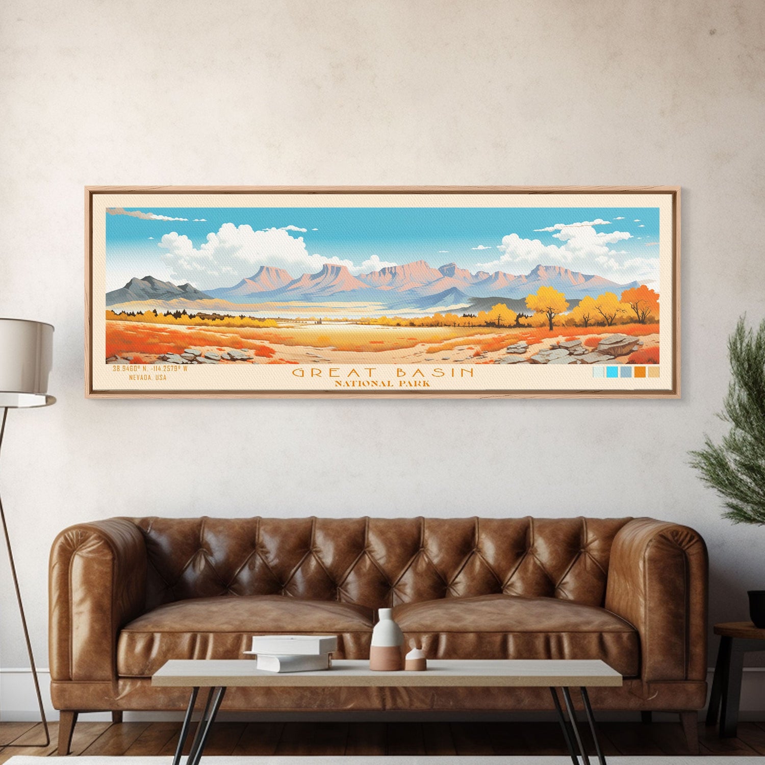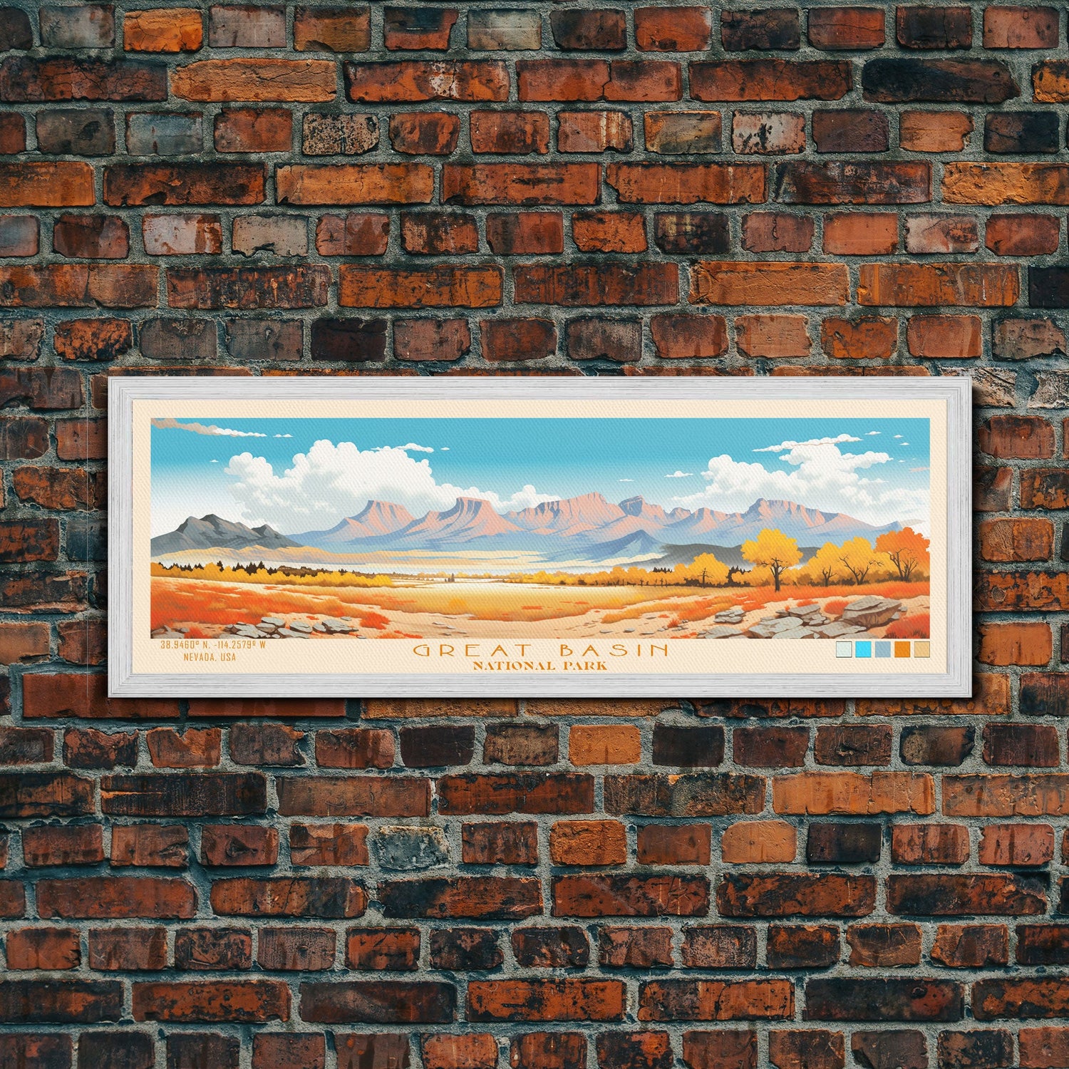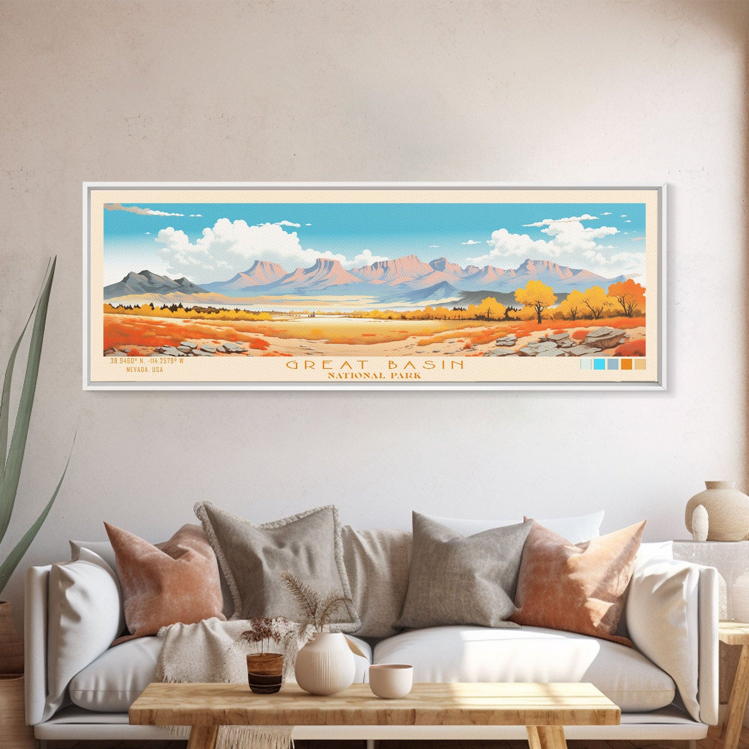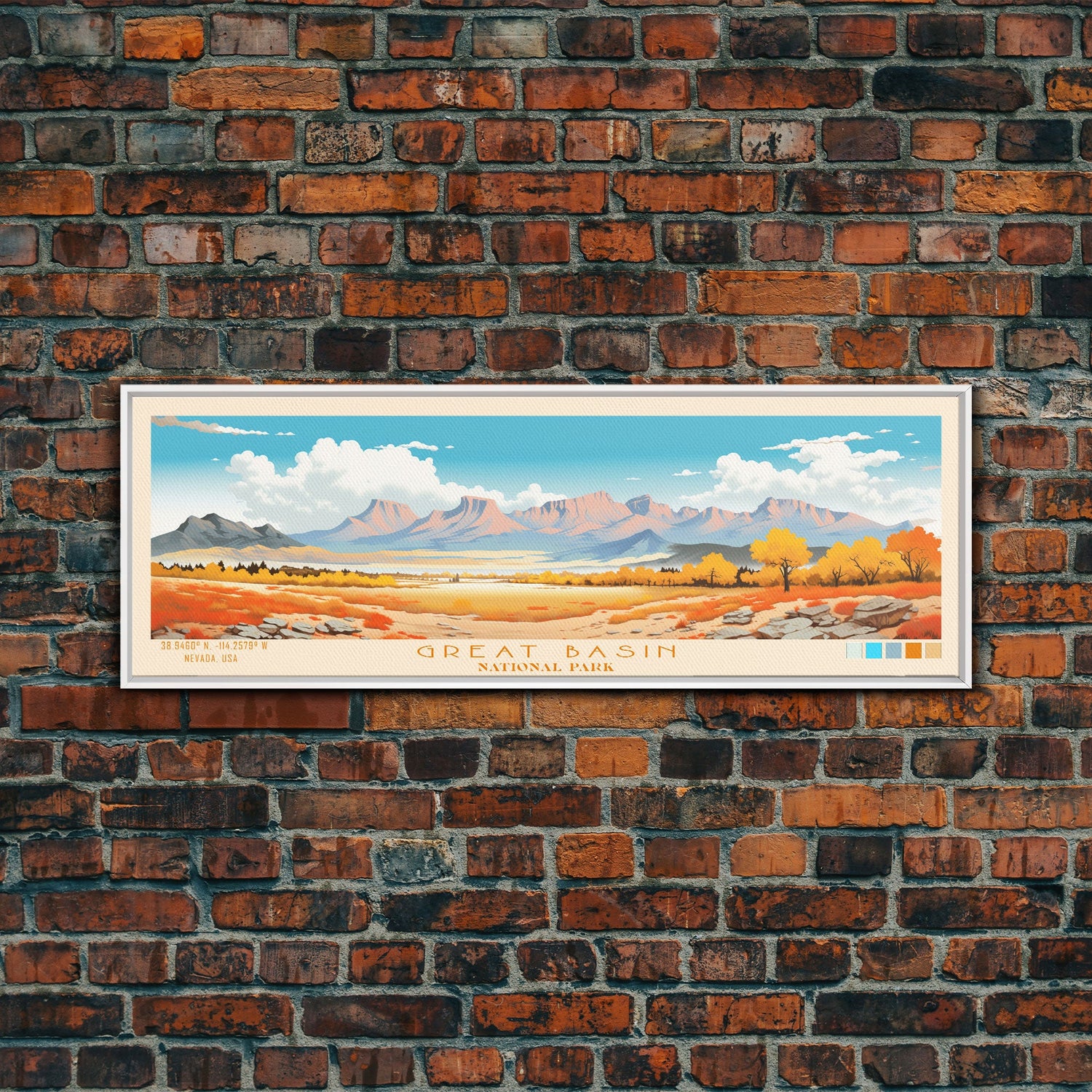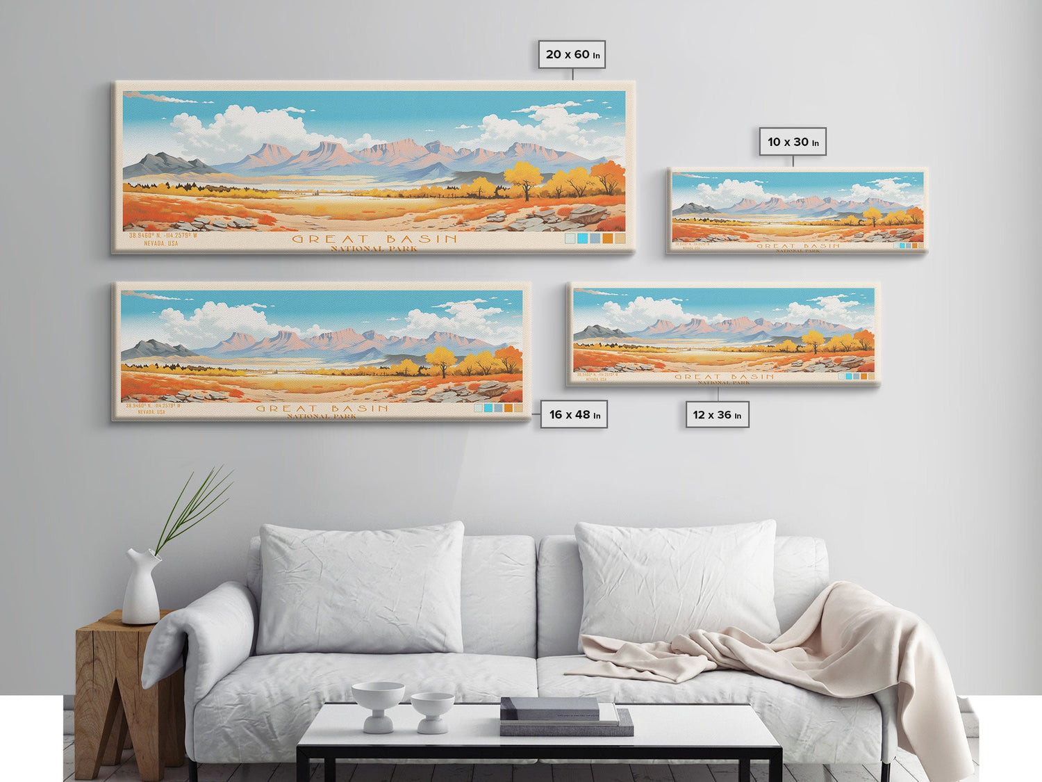 Great Basin National Park, Panoramic Nevada Travel Art, National Park Print, Minimalist Travel Art, Midcentury Modern Style Landscape - 10x30 Inches / No Frame - Stretched Canvas Only is backordered and will ship as soon as it is back in stock.