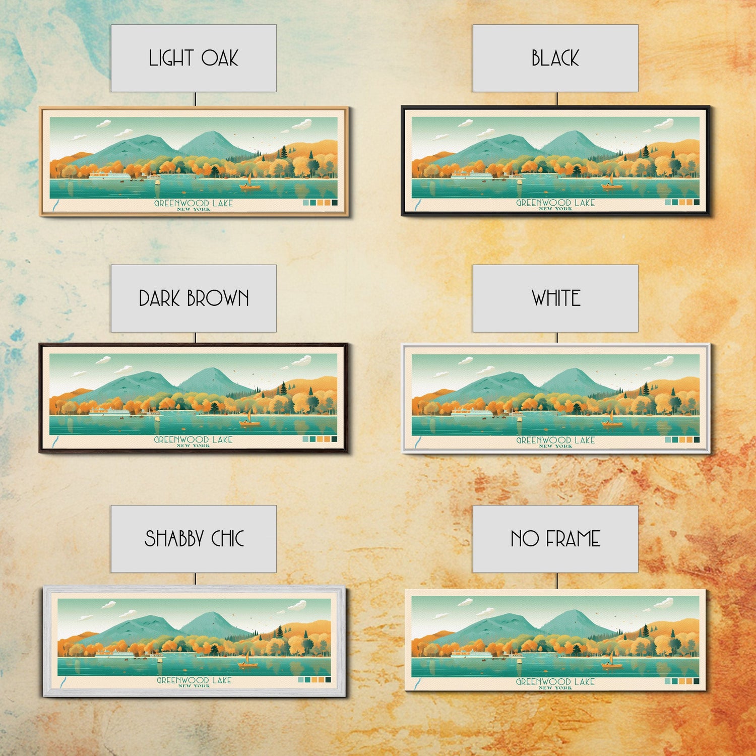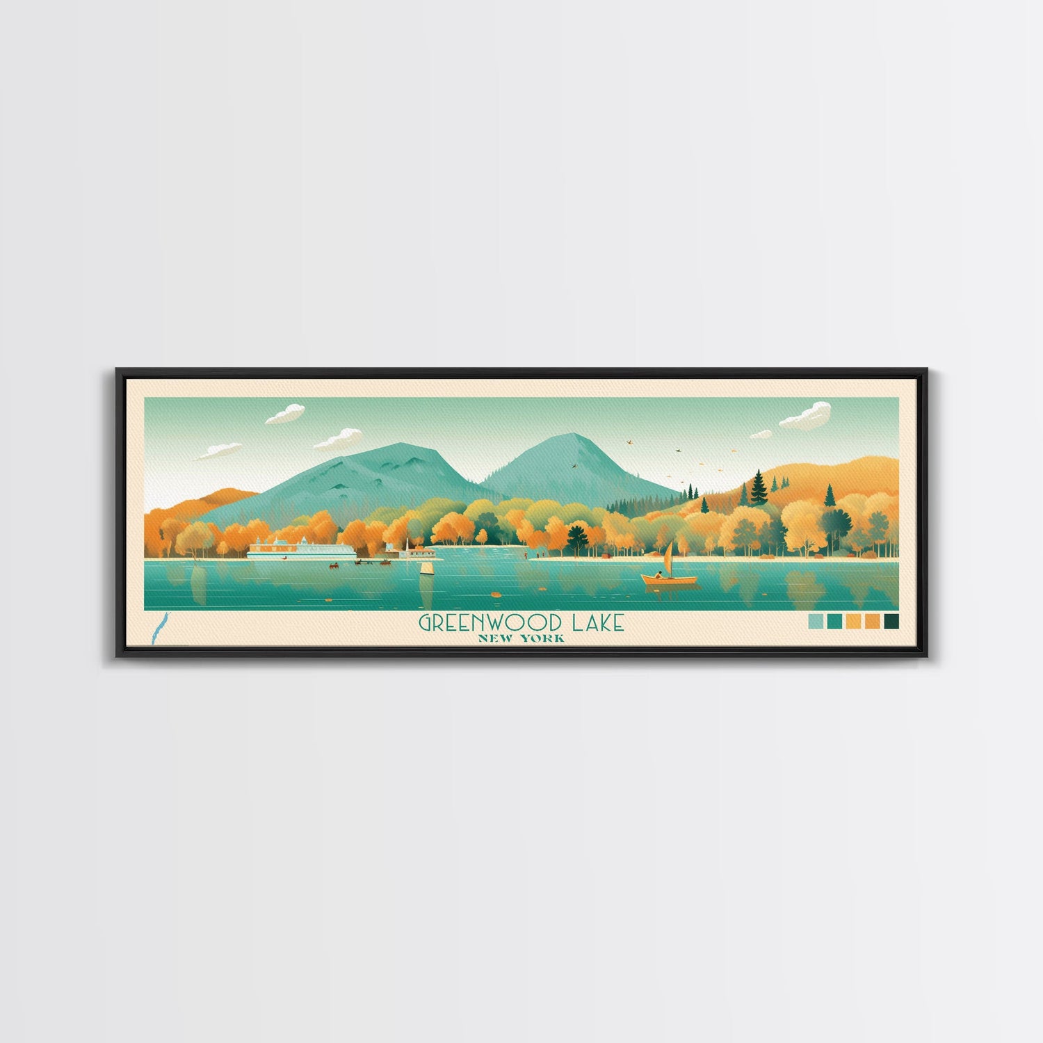 Greenwood Lake New York Framed Canvas Print, Panoramic Art, Midcentury Modern, Pop Art, Bedroom Decor, Travel Poster, Lake House Decor