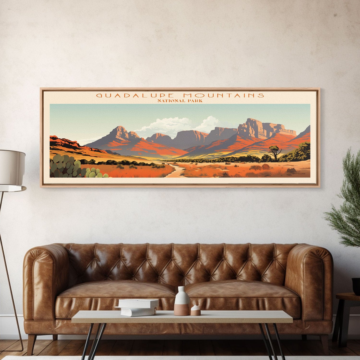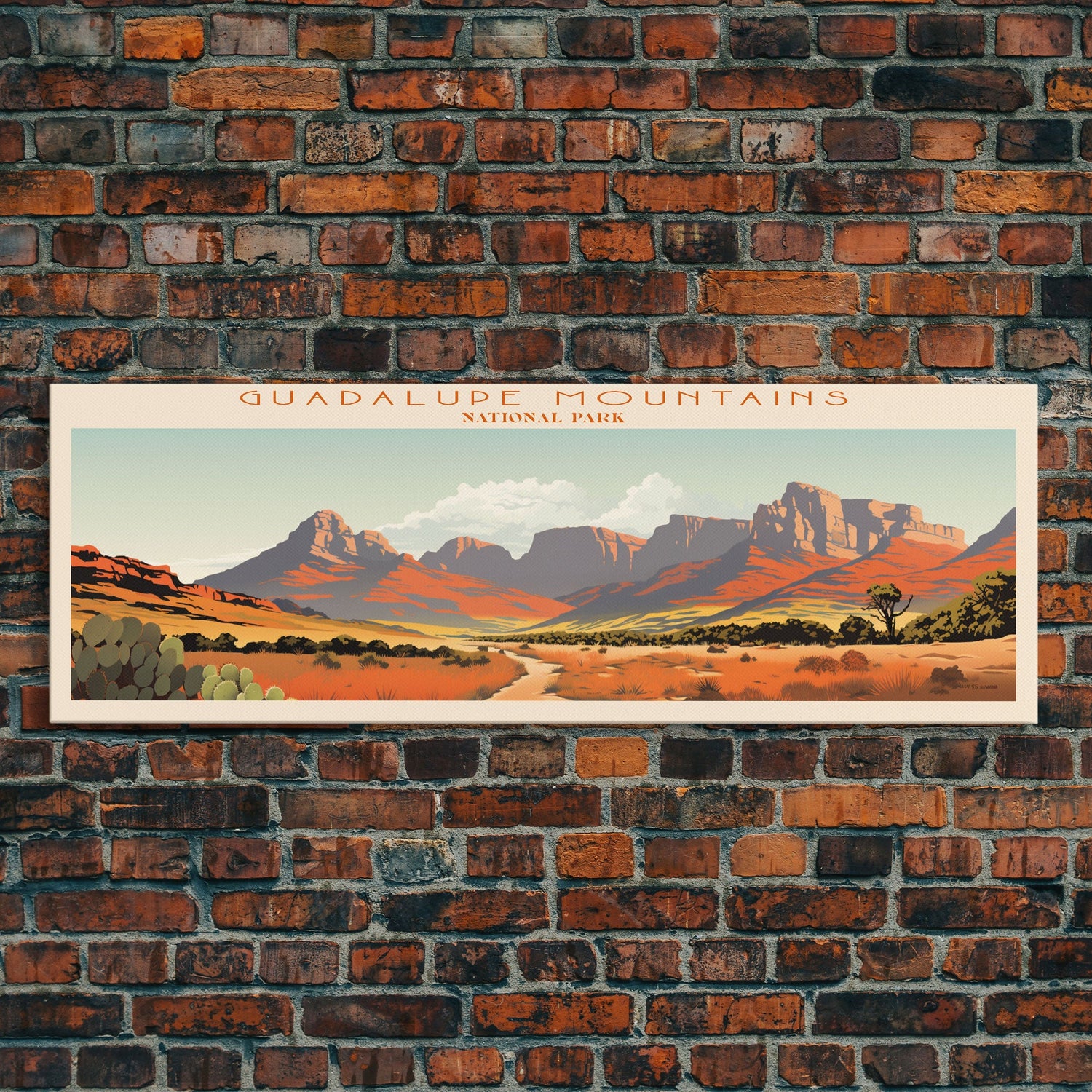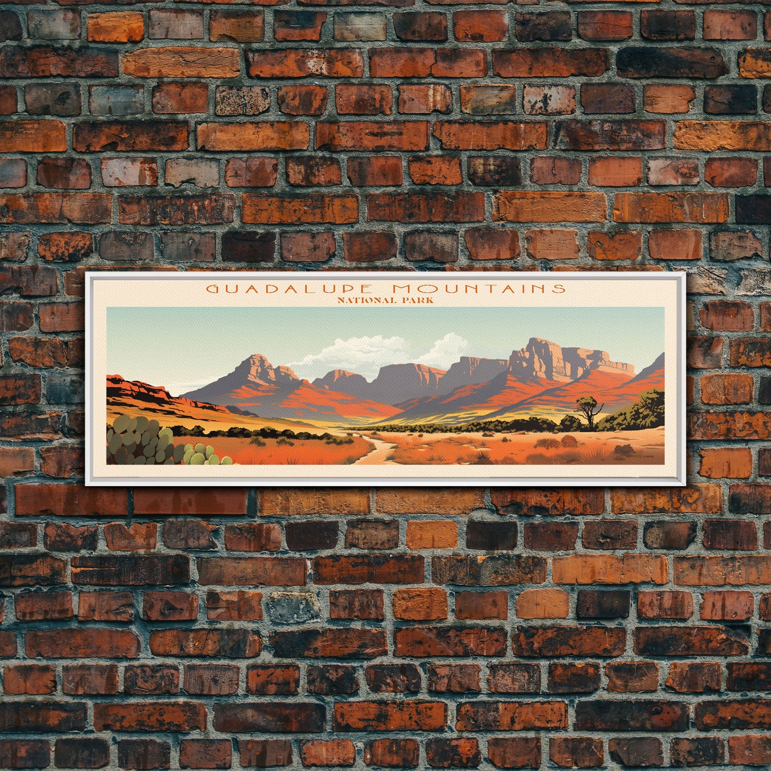 Guadalupe Mountains National Park, Panoramic Texas Travel Art, National Park Print, Minimalist Travel Art, Midcentury Modern Style Landscape - 10x30 Inches / No Frame - Stretched Canvas Only is backordered and will ship as soon as it is back in stock.