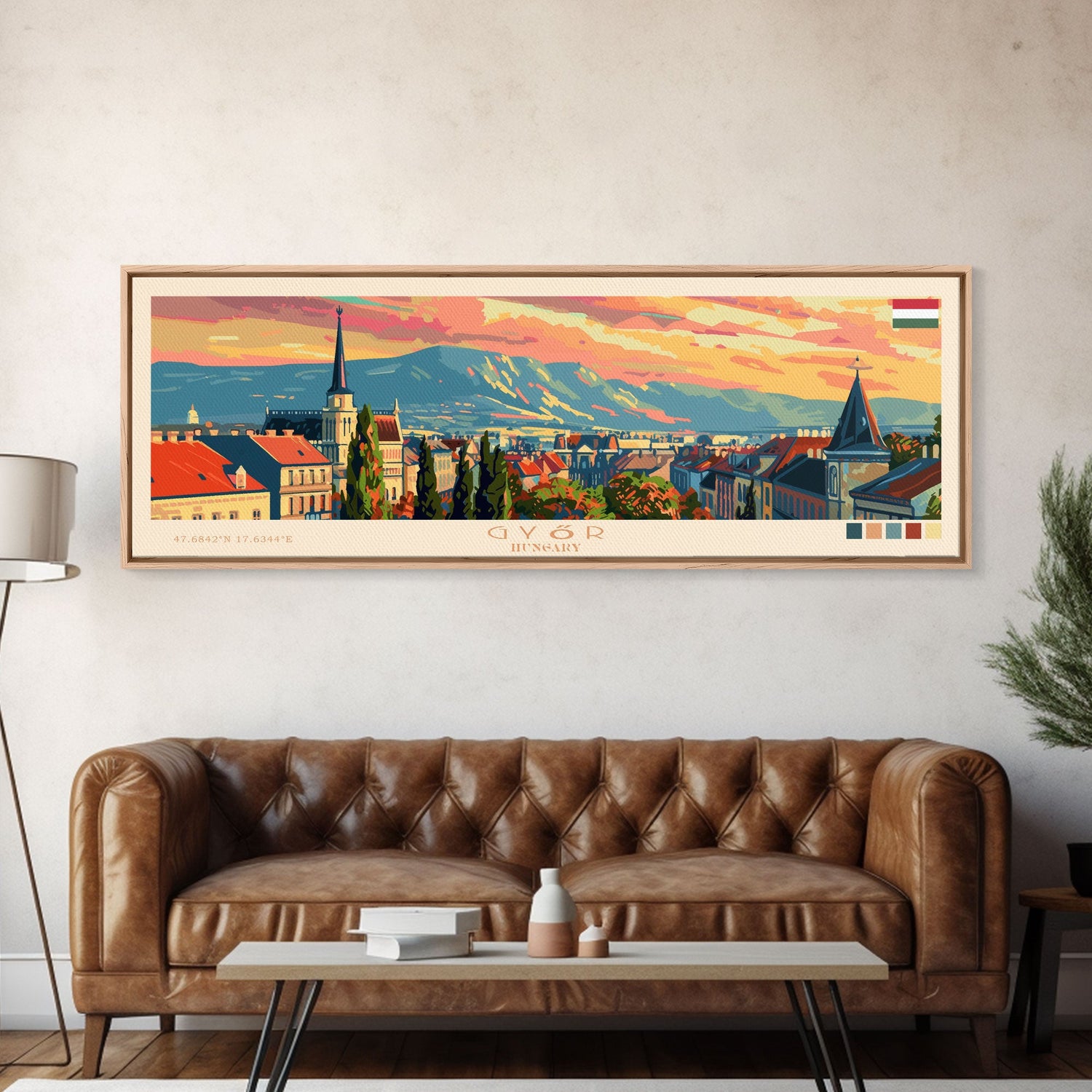 Gyor Hungary Wall Art, Panoramic Travel Poster, Panoramic Framed Canvas Print, City Wall Art, Wall Hanging Home Decor, Travel Art