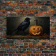 Halloween Decor, Spooky Crow Print, The Raven and The Jack O Lantern, Halloween Wall Art, Victorian Oil Painting, Dark Academia, Goth Art