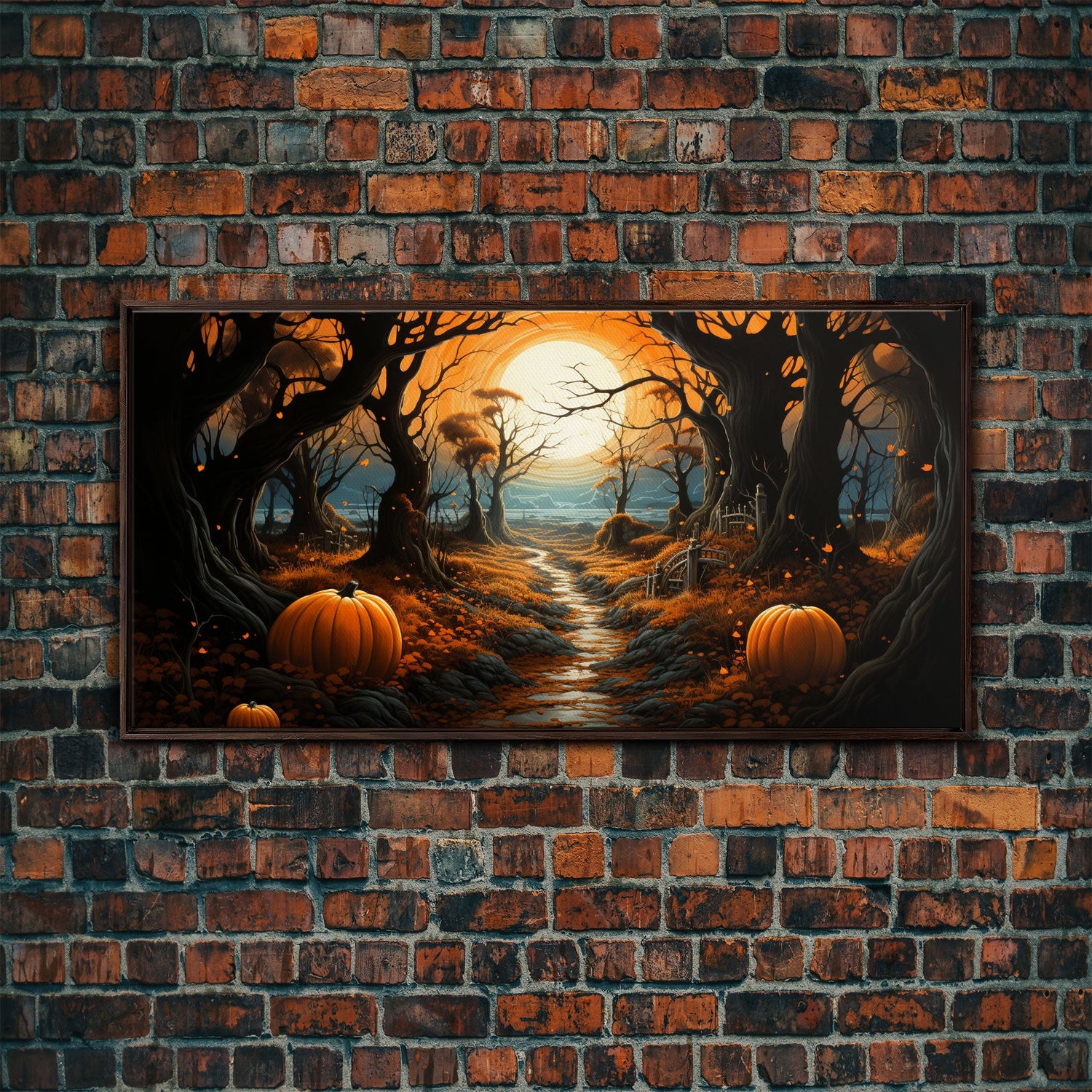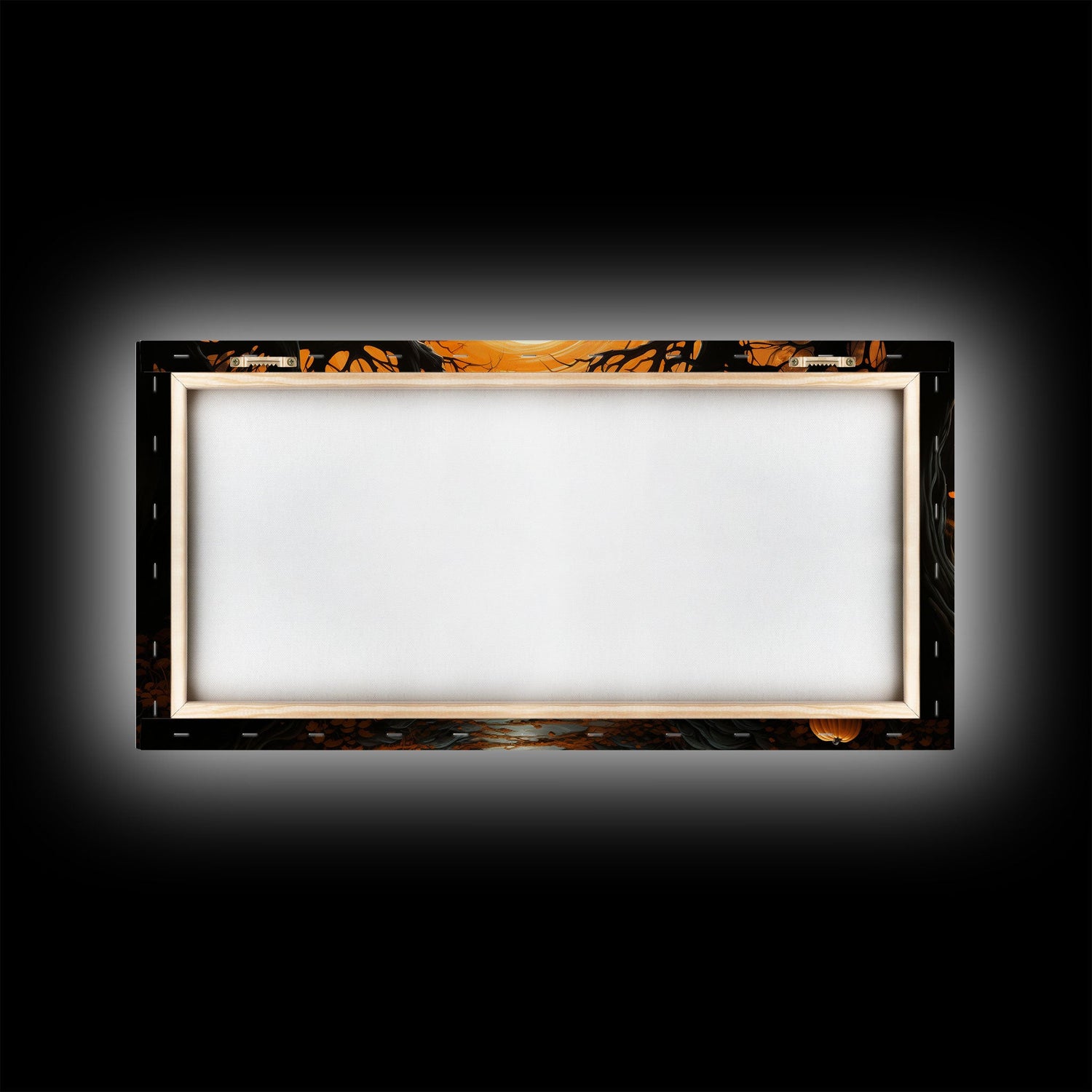 Halloween Wall Decor, Spooky Art Print, Pumpkin Decor, Canvas Print, Wall Hanging, Panoramic Art, Farmhouse Wall Art, Ranch House Decor