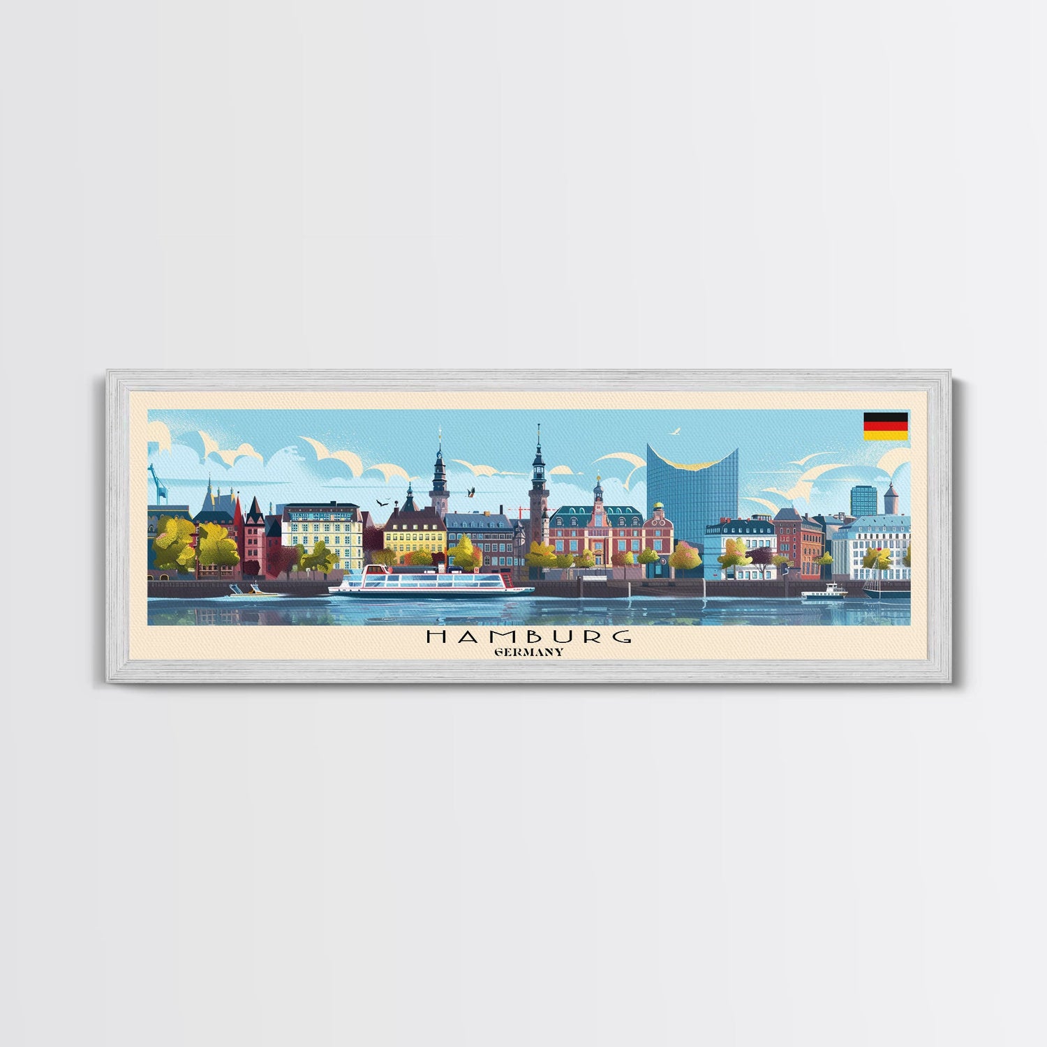 Hamburg Germany Travel Print Wall Art, Panoramic City Art, Travel Art, Wall Decor, Vacation Gift, Framed Canvas Print Or Metal Art