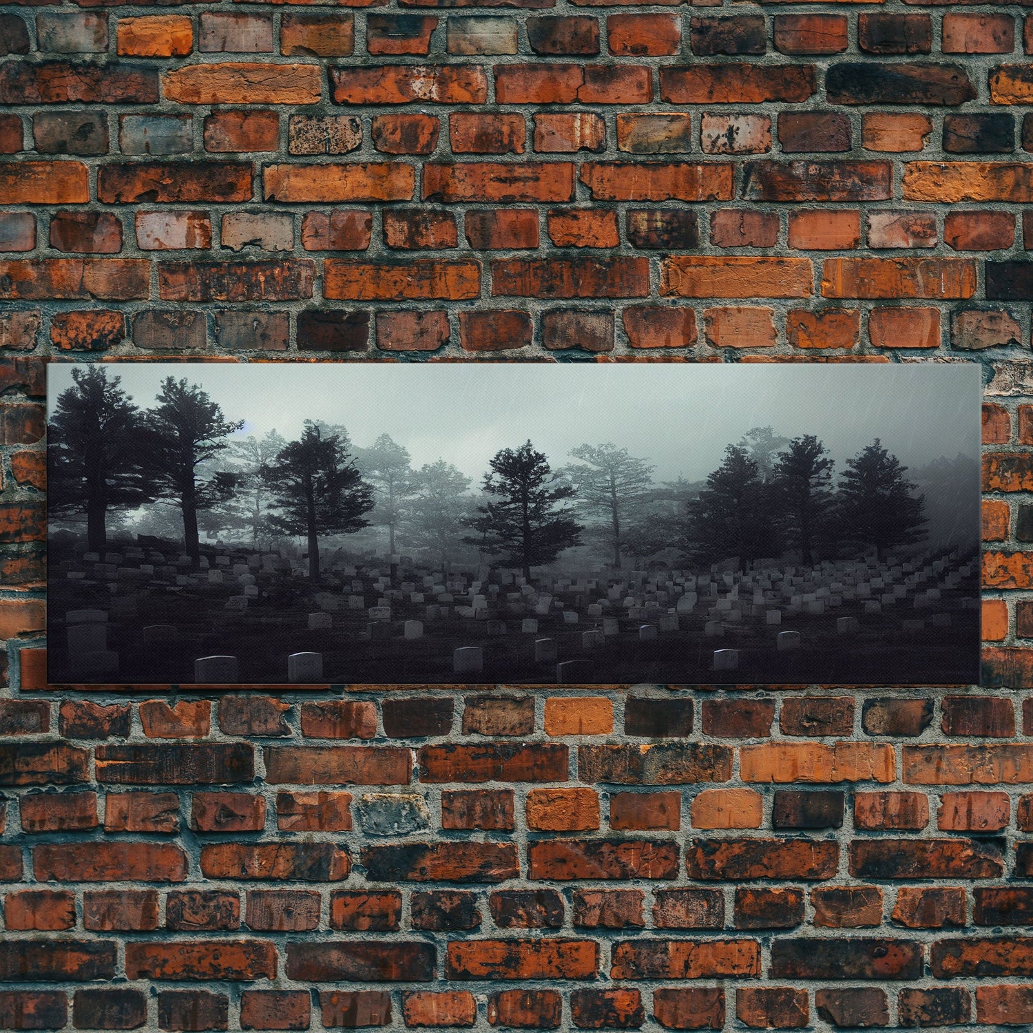 Haunted Cemetery Halloween Art, Extra Large Wall Art, Framed Panoramic Canvas Print, Framed Wall Decor - 10x30 Inches / No Frame - Stretched Canvas Only is backordered and will ship as soon as it is back in stock.