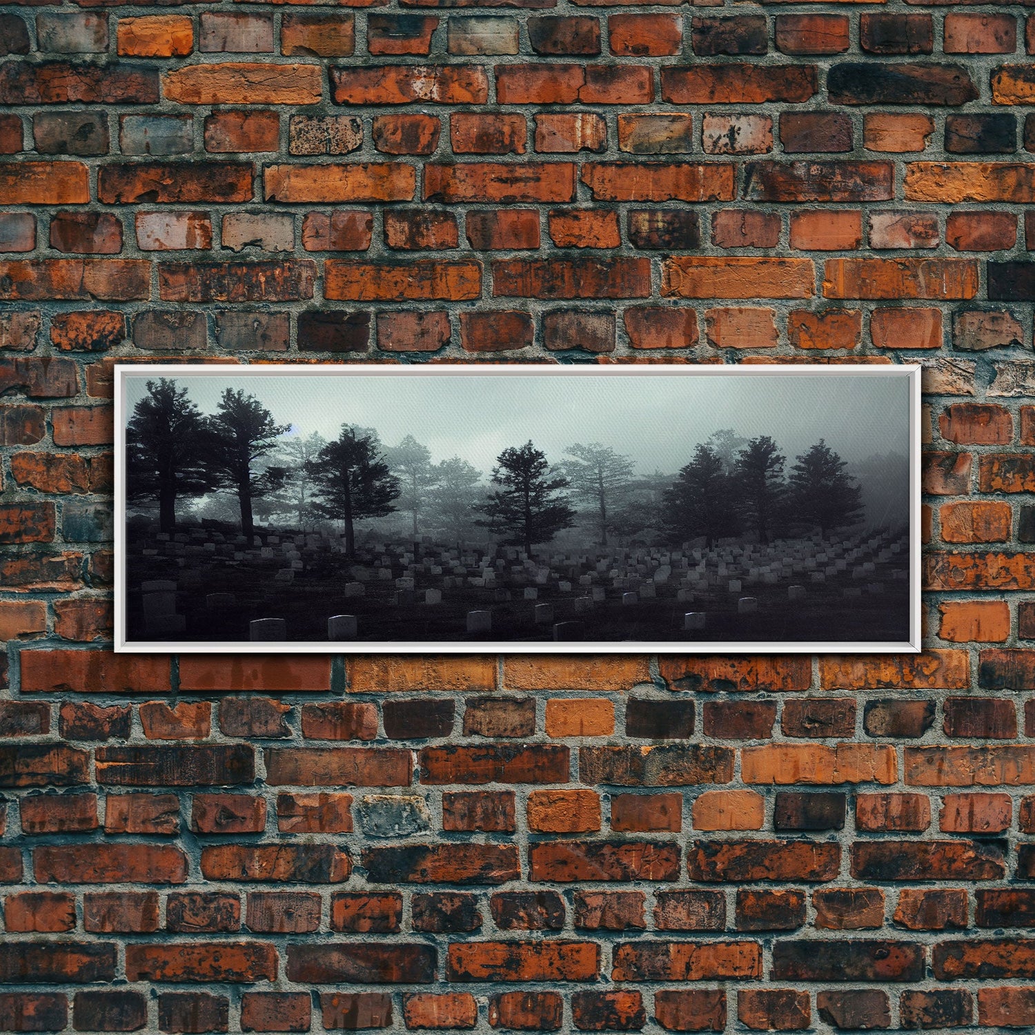 Haunted Cemetery Halloween Art, Extra Large Wall Art, Framed Panoramic Canvas Print, Framed Wall Decor
