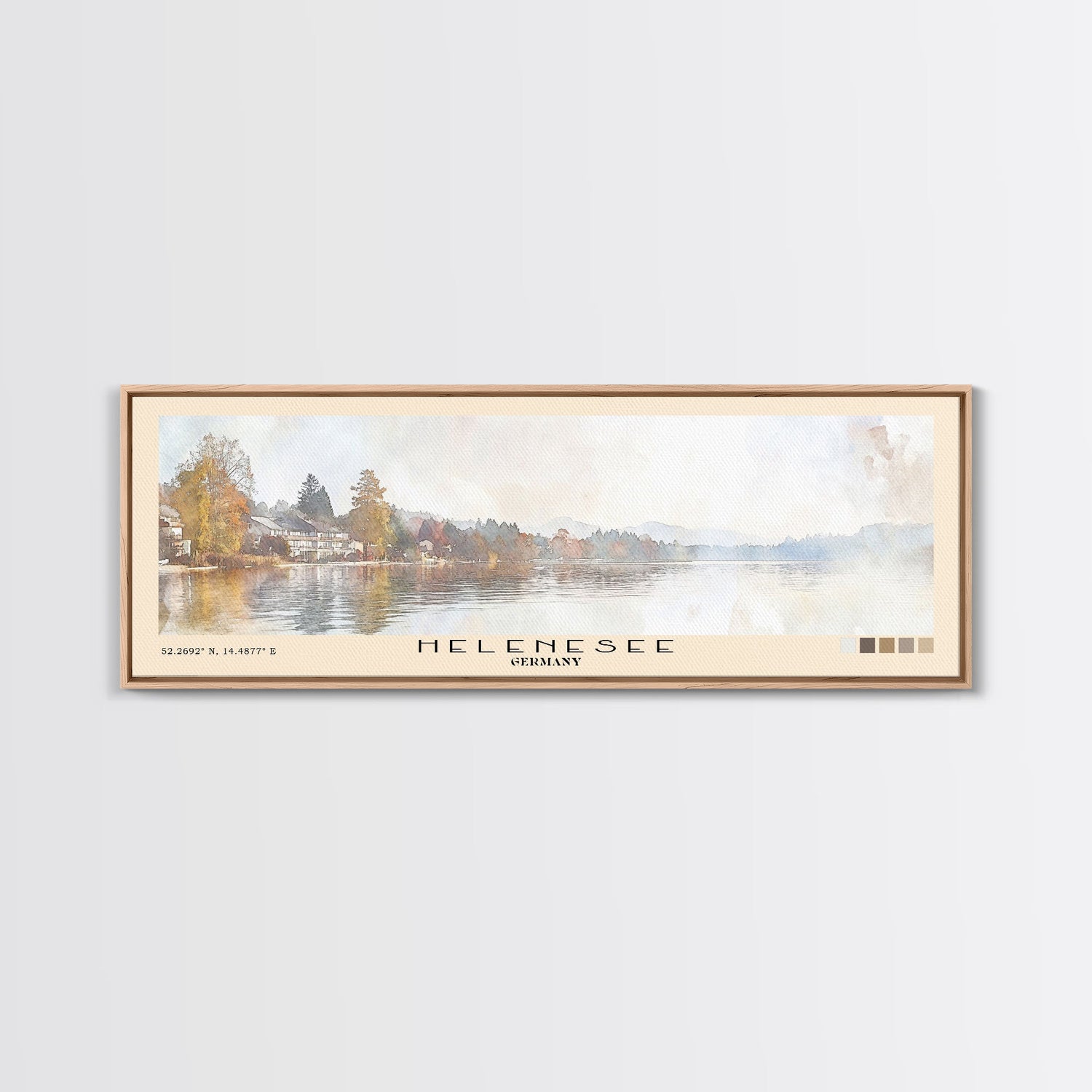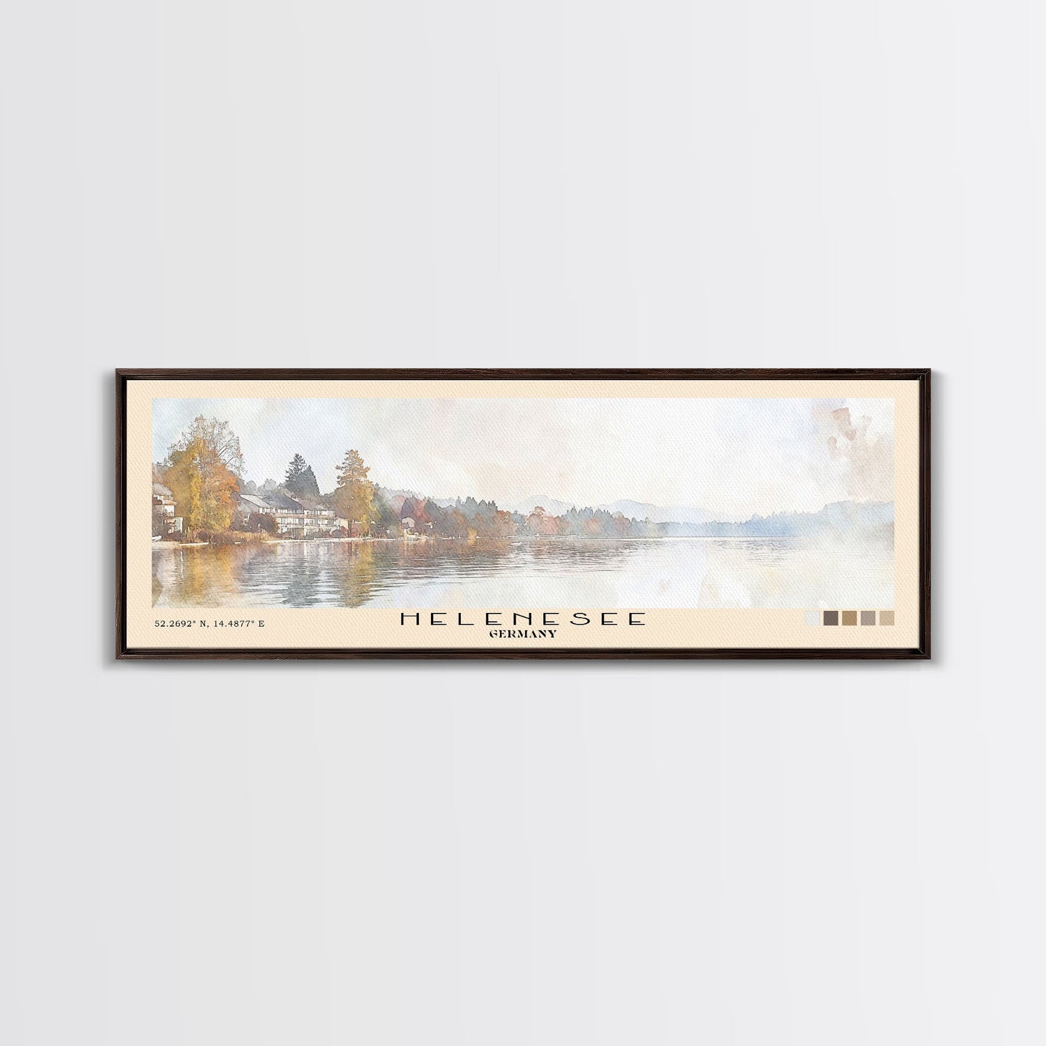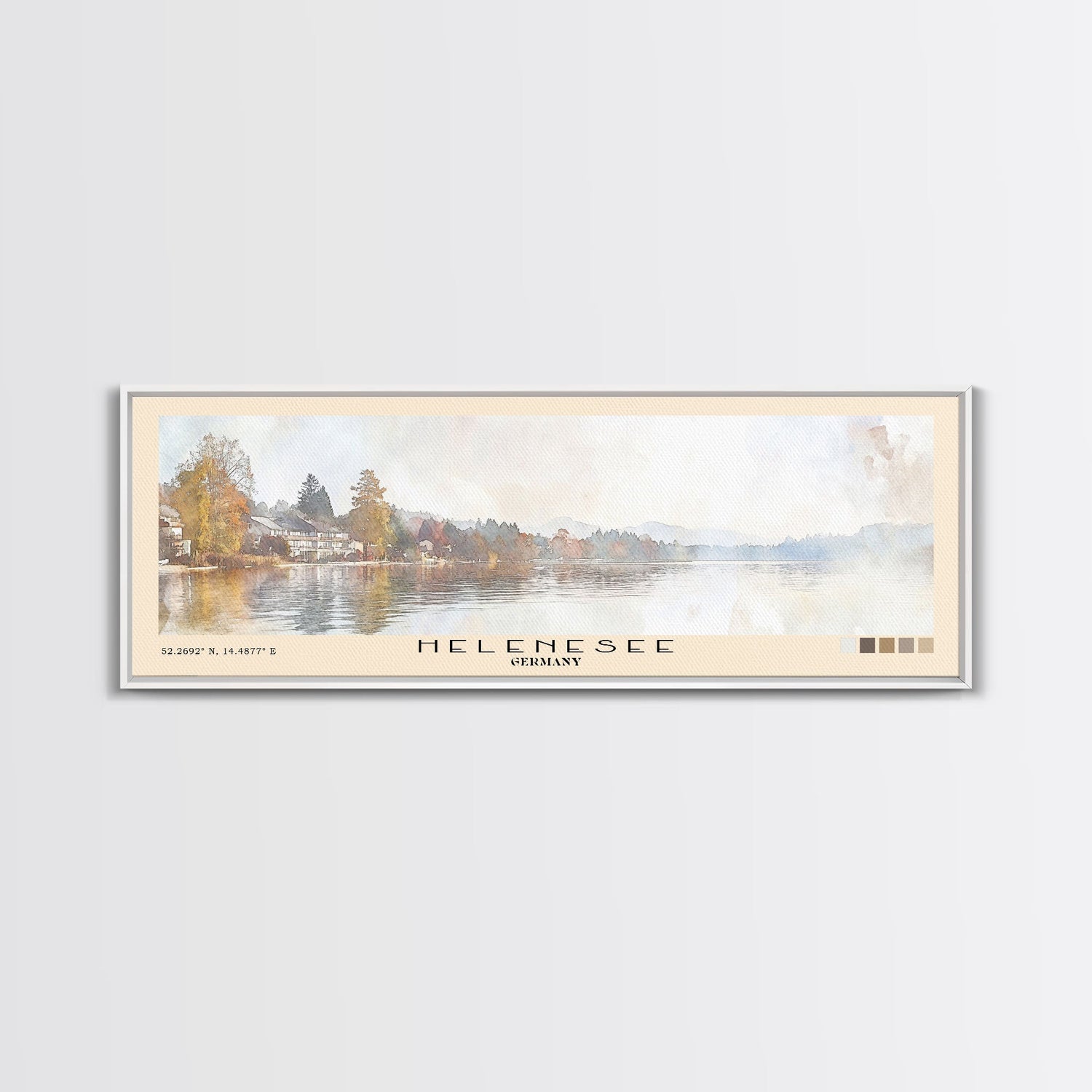 Helenesee, Germany Watercolor Beach Print, Vacation Gift, Germany Wall Art, Framed Canvas Print, Framed Beach Painting - 10x30 Inches / No Frame - Stretched Canvas Only is backordered and will ship as soon as it is back in stock.
