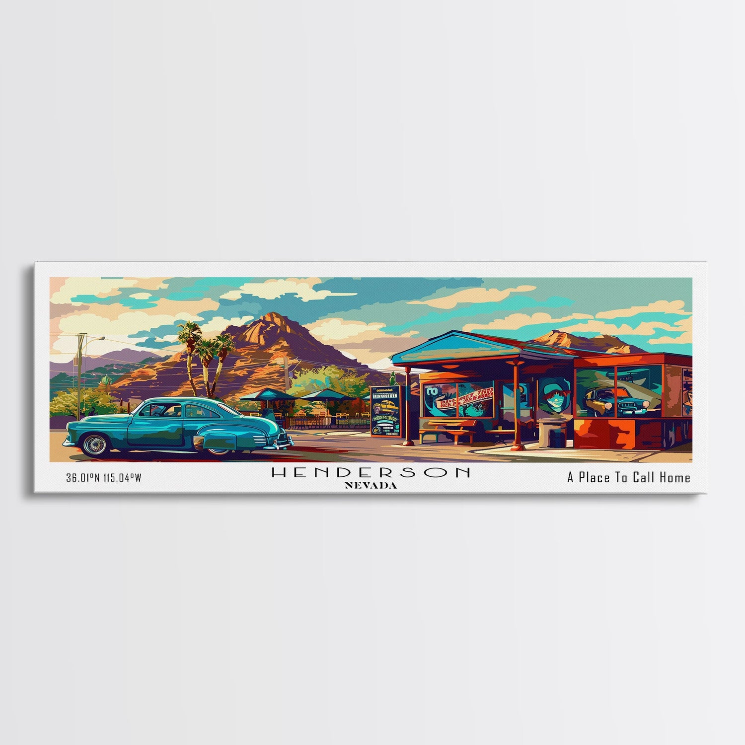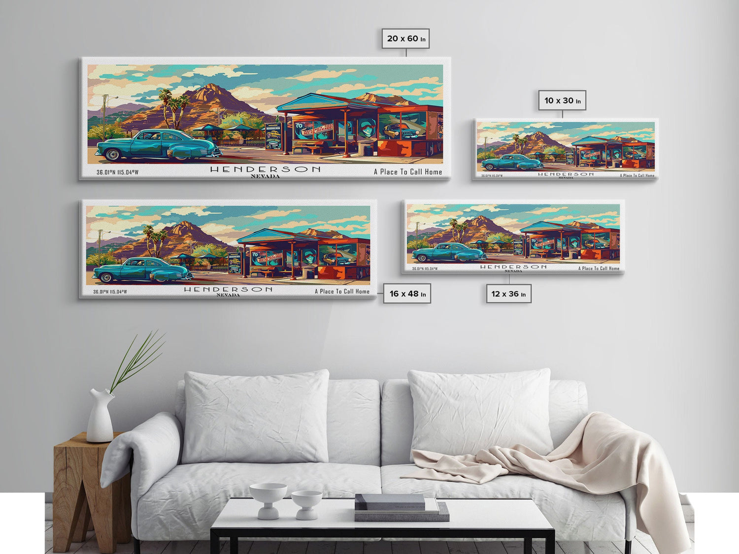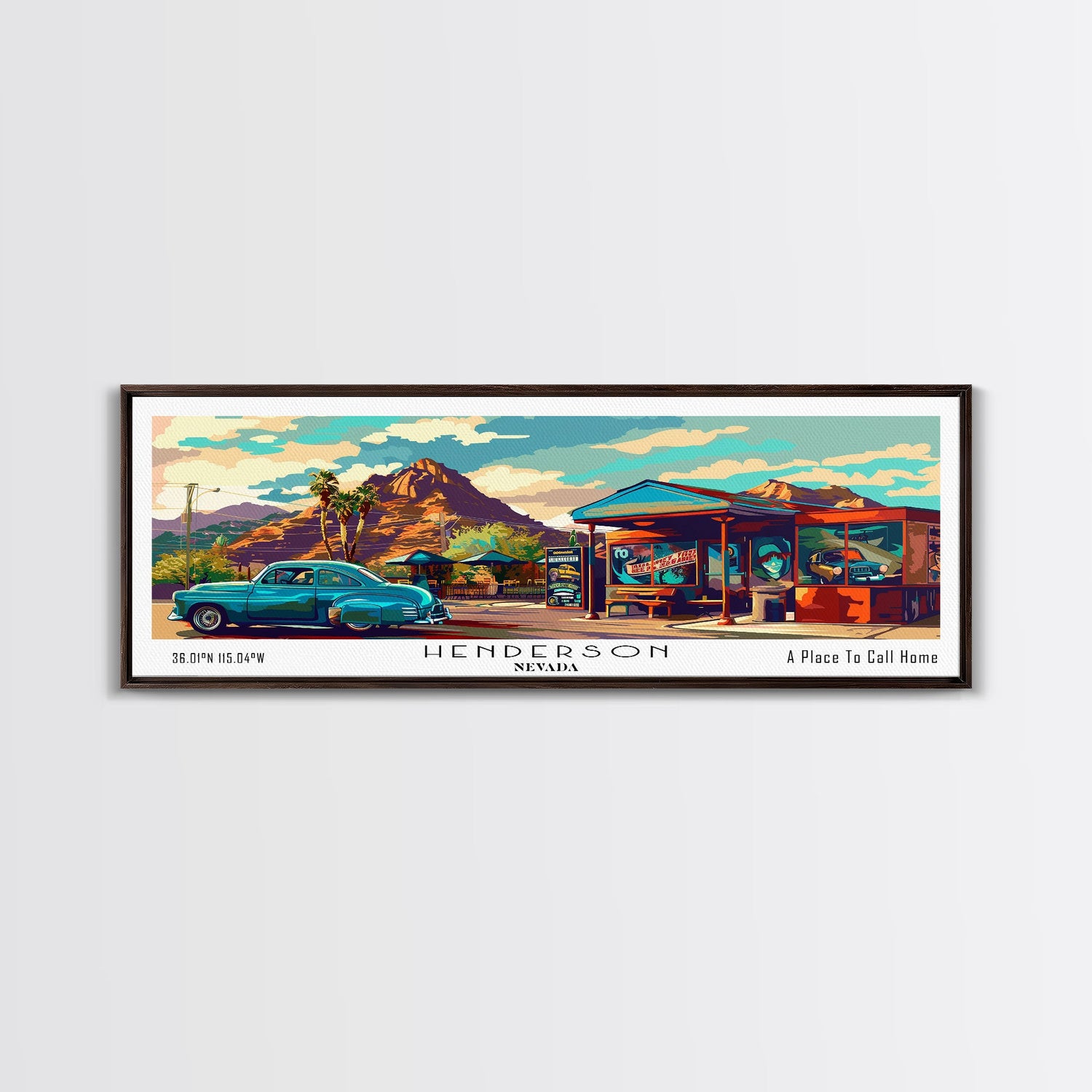 Henderson Nevada Panoramic Painting Framed Canvas Print, Mid Century Modern Art, Pop Art Style, Travel Poster, Living Room Decor - 10x30 Inches / No Frame - Stretched Canvas Only is backordered and will ship as soon as it is back in stock.