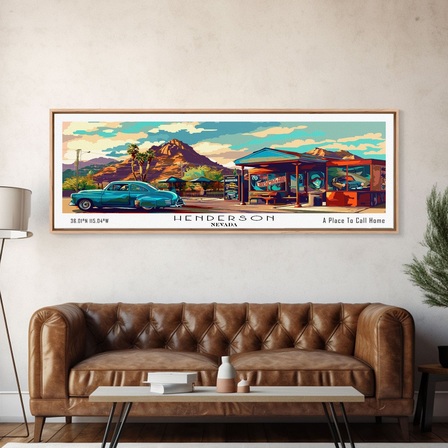 Henderson Nevada Panoramic Painting Framed Canvas Print, Mid Century Modern Art, Pop Art Style, Travel Poster, Living Room Decor