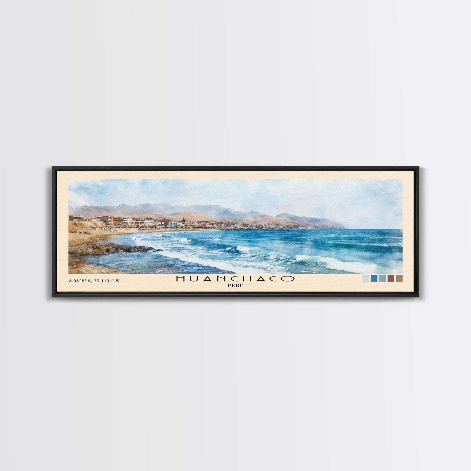 Huanchaco, Peru Watercolor Beach Print, Vacation Gift, Peru Wall Art, Framed Canvas Print, Framed Beach Painting