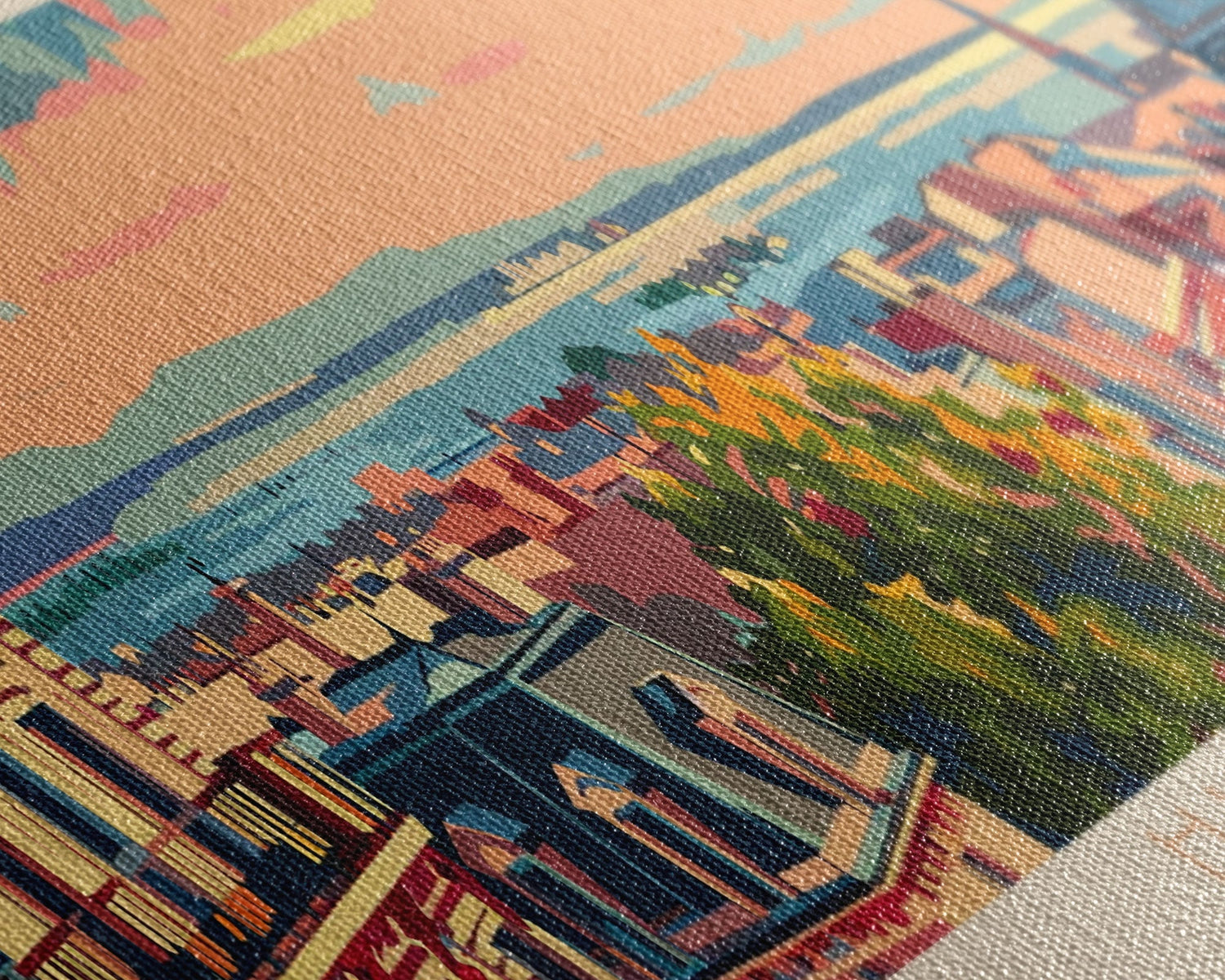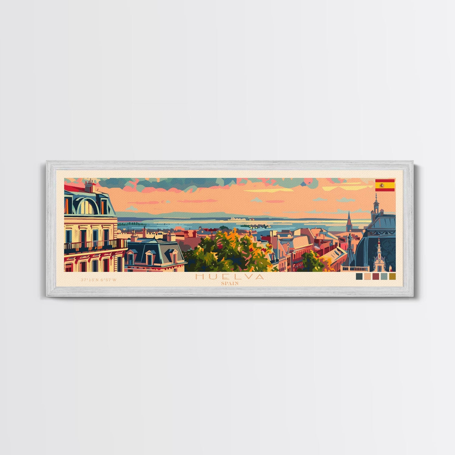 Huelva Spain Panoramic Travel Poster, Framed Canvas Print or Metal Wall Art, Travel Art, Home Decor, Panoramic Painting, Midcentury Art