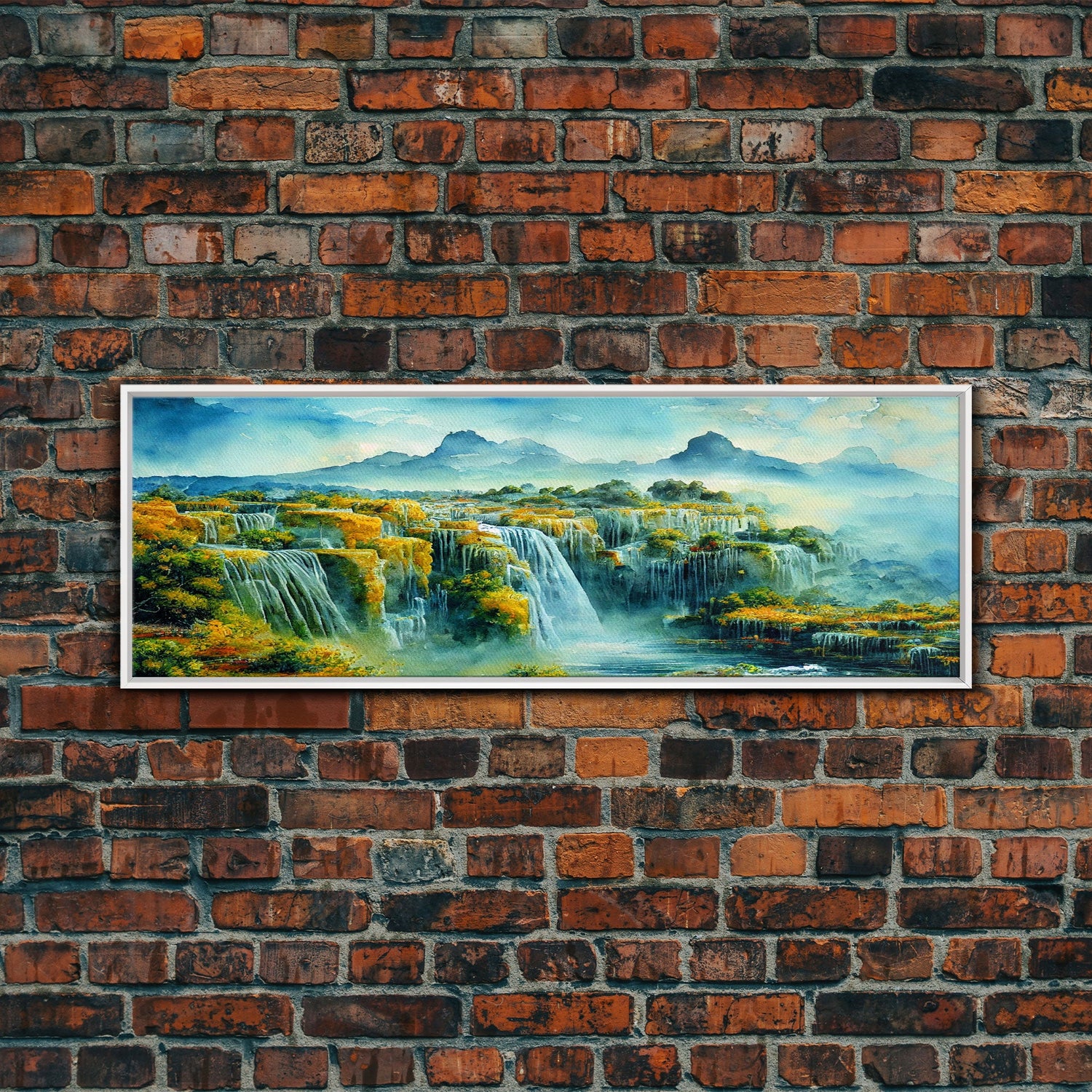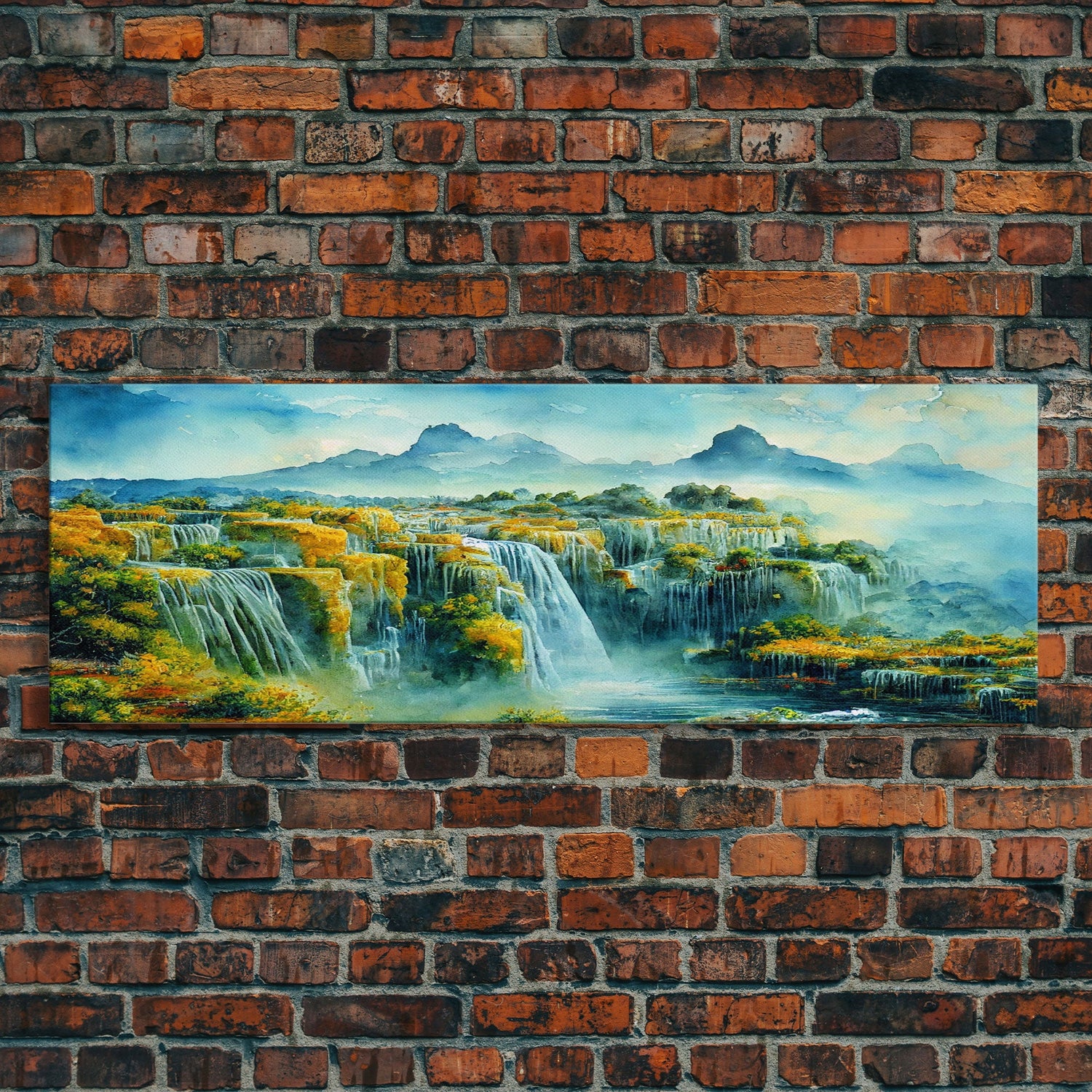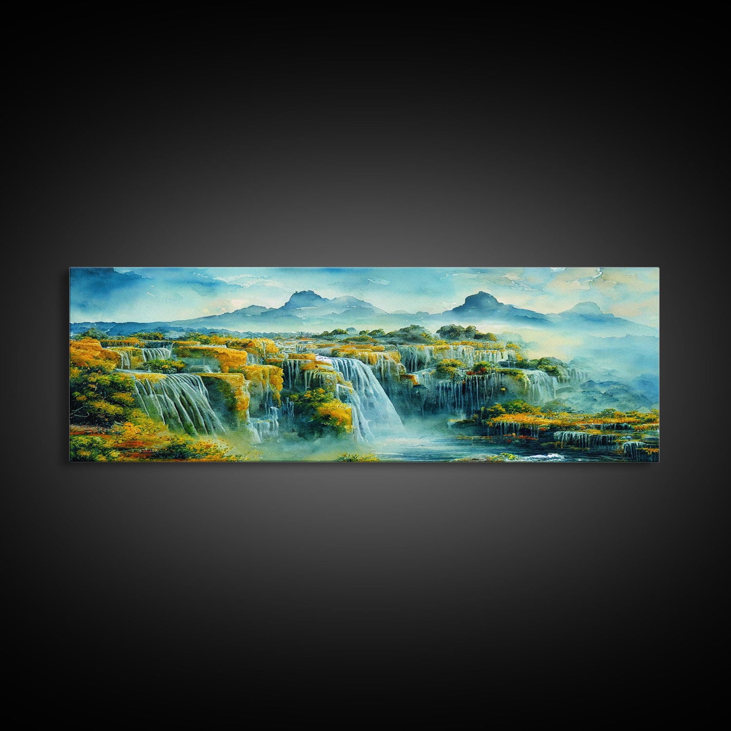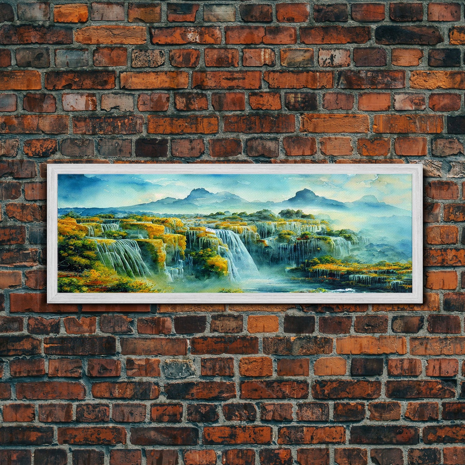 Iguazu Falls of Argentina and Brazil, Framed Canvas Art, Original Waterfall Painting PRINT, Panoramic Extra Large Office Wall Art - 10x30 Inches / No Frame - Stretched Canvas Only is backordered and will ship as soon as it is back in stock.