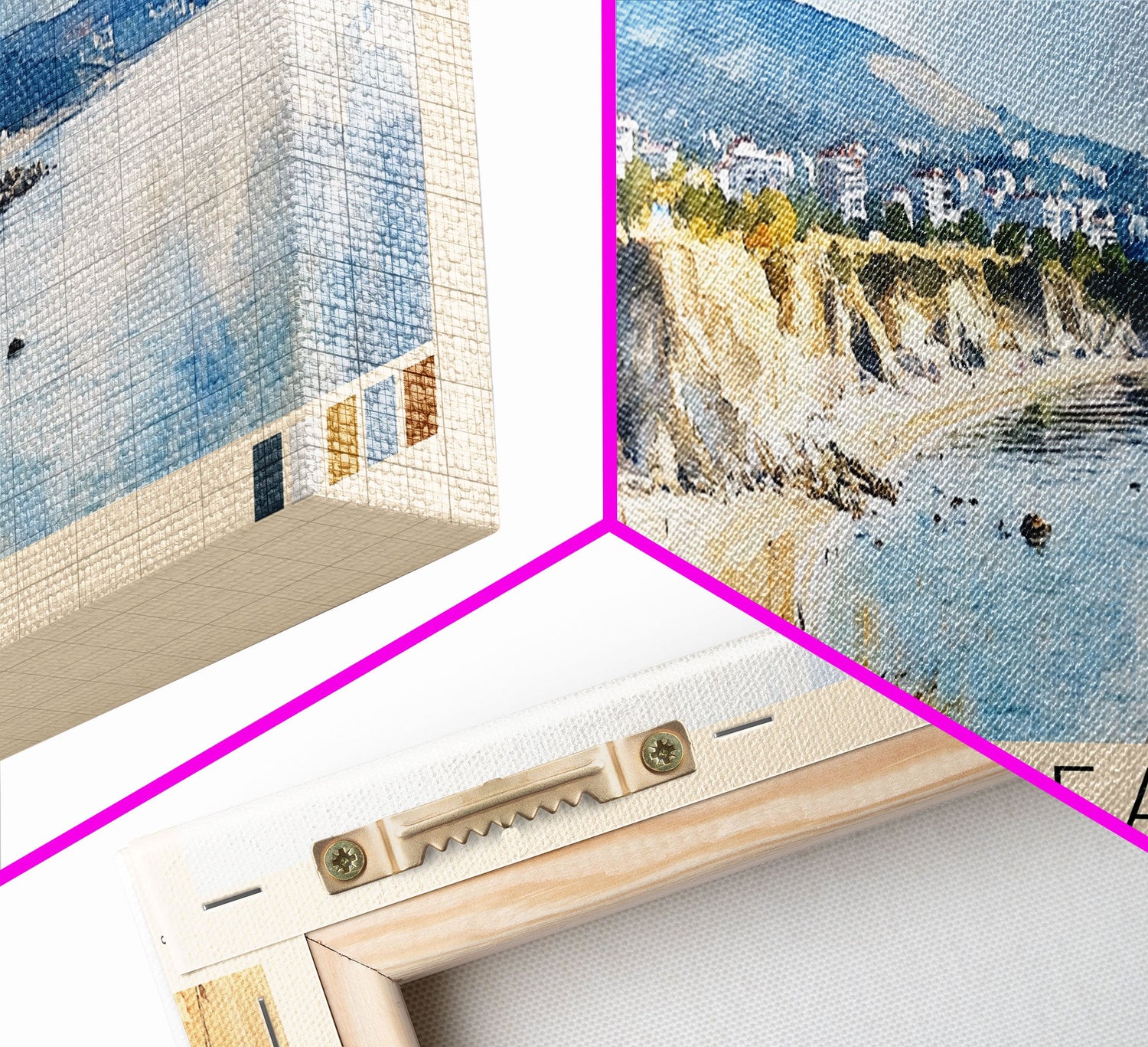 Irakli Beach, Bulgaria Watercolor Beach Print, Vacation Gift, Bulgaria Wall Art, Framed Canvas Print, Framed Beach Painting