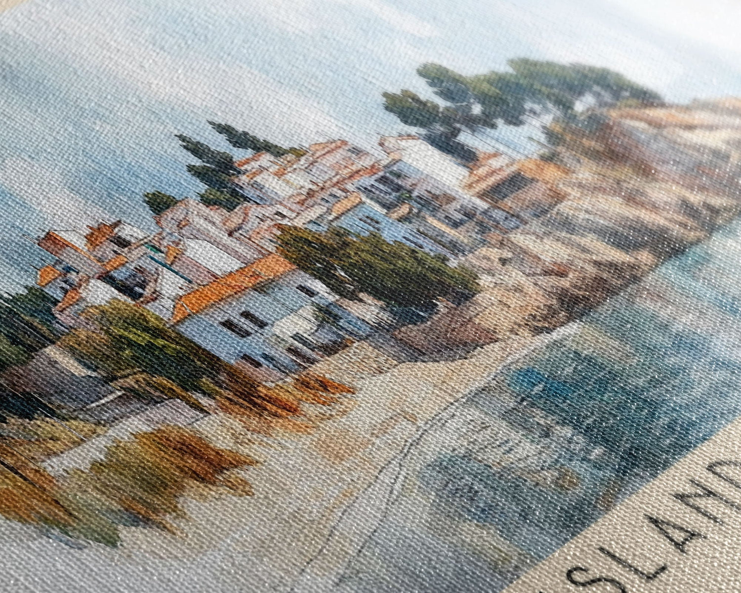 Island of Ons, Spain Watercolor Beach Print, Vacation Gift, Spain Wall Art, Framed Canvas Print, Framed Beach Painting