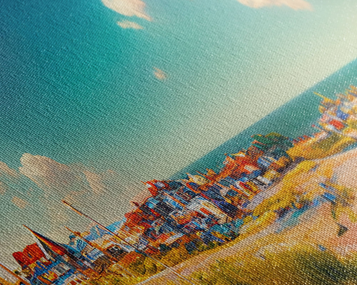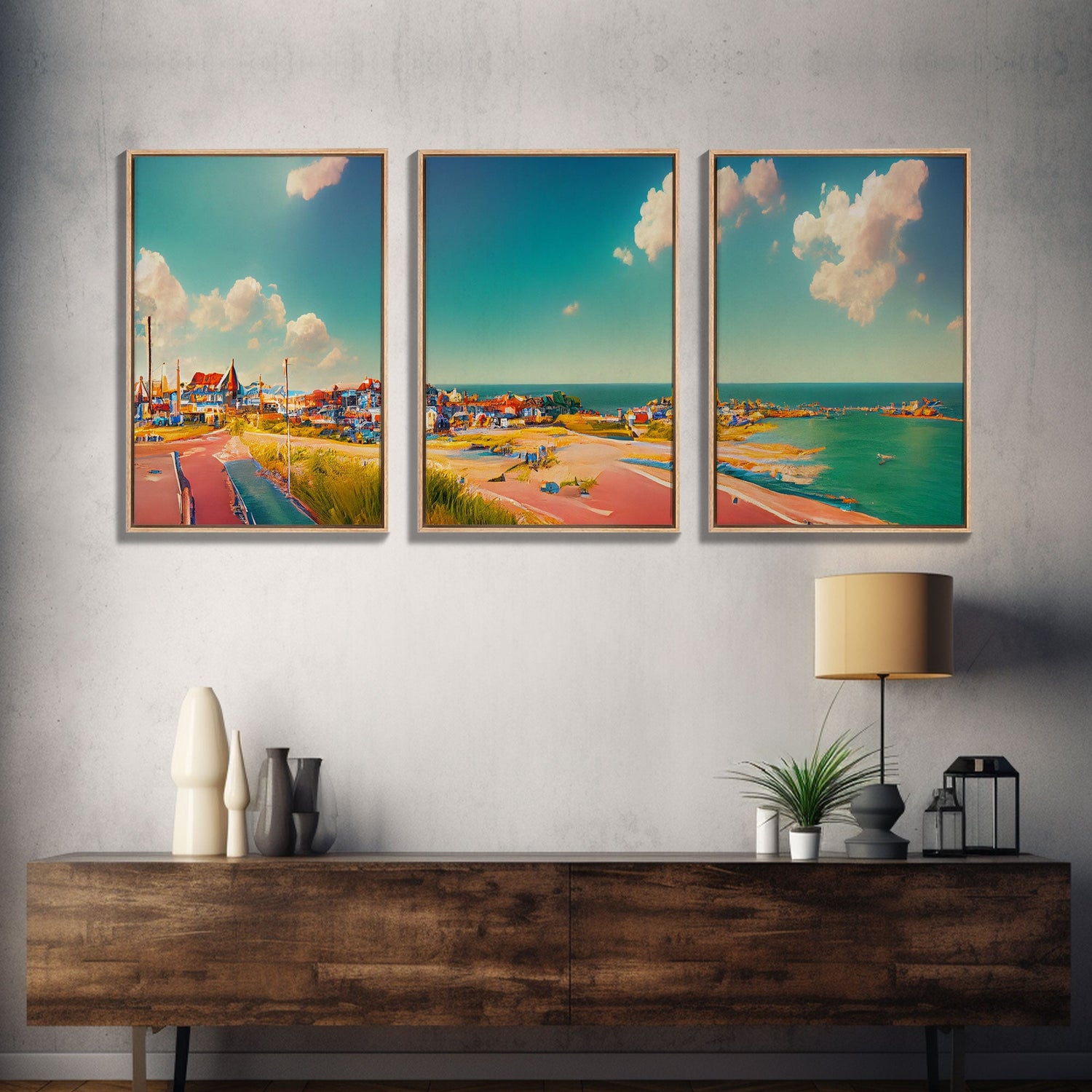 Italian Seaside Village, Cool Beach House Art, Lakehouse Wall Decor, 3 Piece Canvas Decor, 3 Piece Wall Art, Ready To Hang Canvas Prints