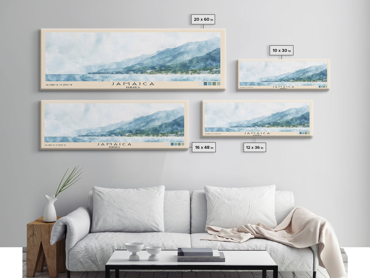 Jamaica, Jamaica Watercolor Beach Print, Vacation Gift, Jamaica Wall Art, Framed Canvas Print, Framed Beach Painting - 10x30 Inches / No Frame - Stretched Canvas Only is backordered and will ship as soon as it is back in stock.