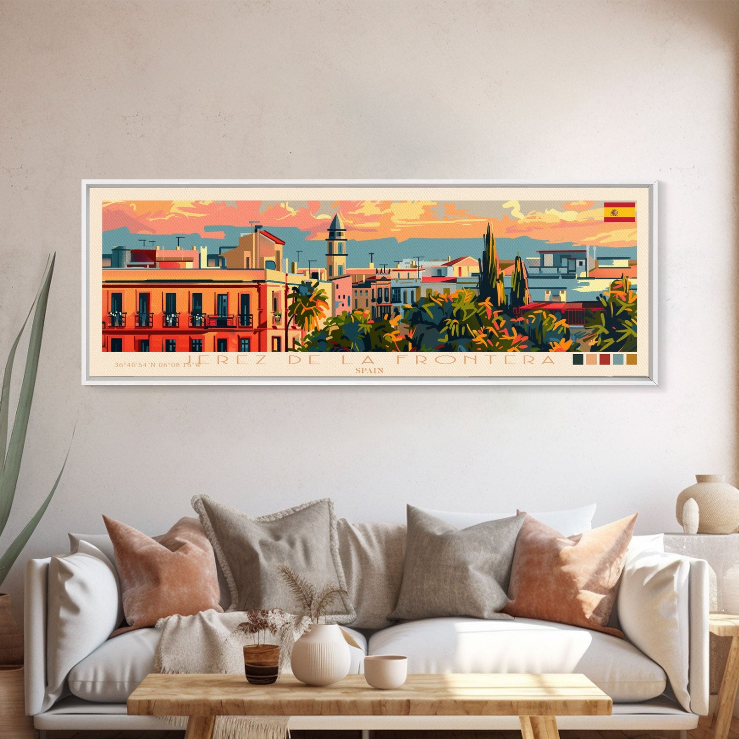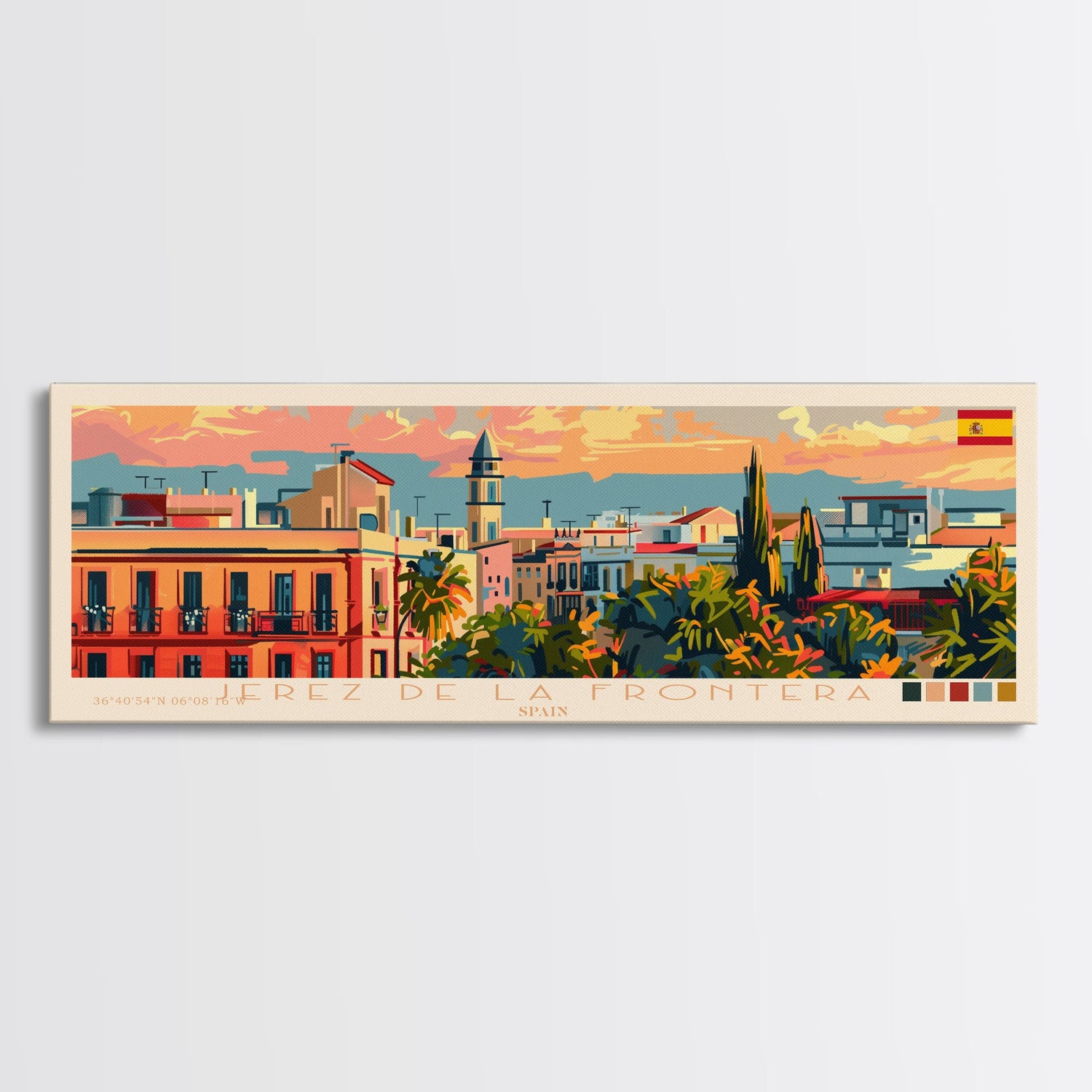 Jerez D eLa Frontera Spain Panoramic Travel Poster, Framed Canvas Print or Metal Wall Art, Travel Art, Home Decor, Panoramic Painting, Midcentury Art