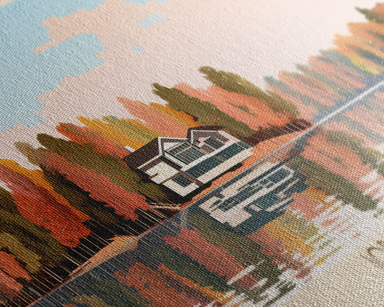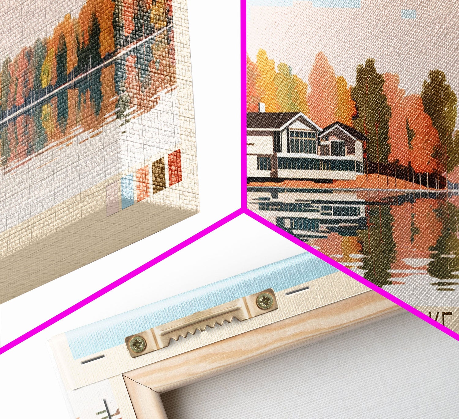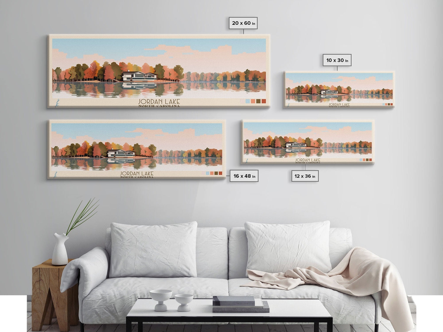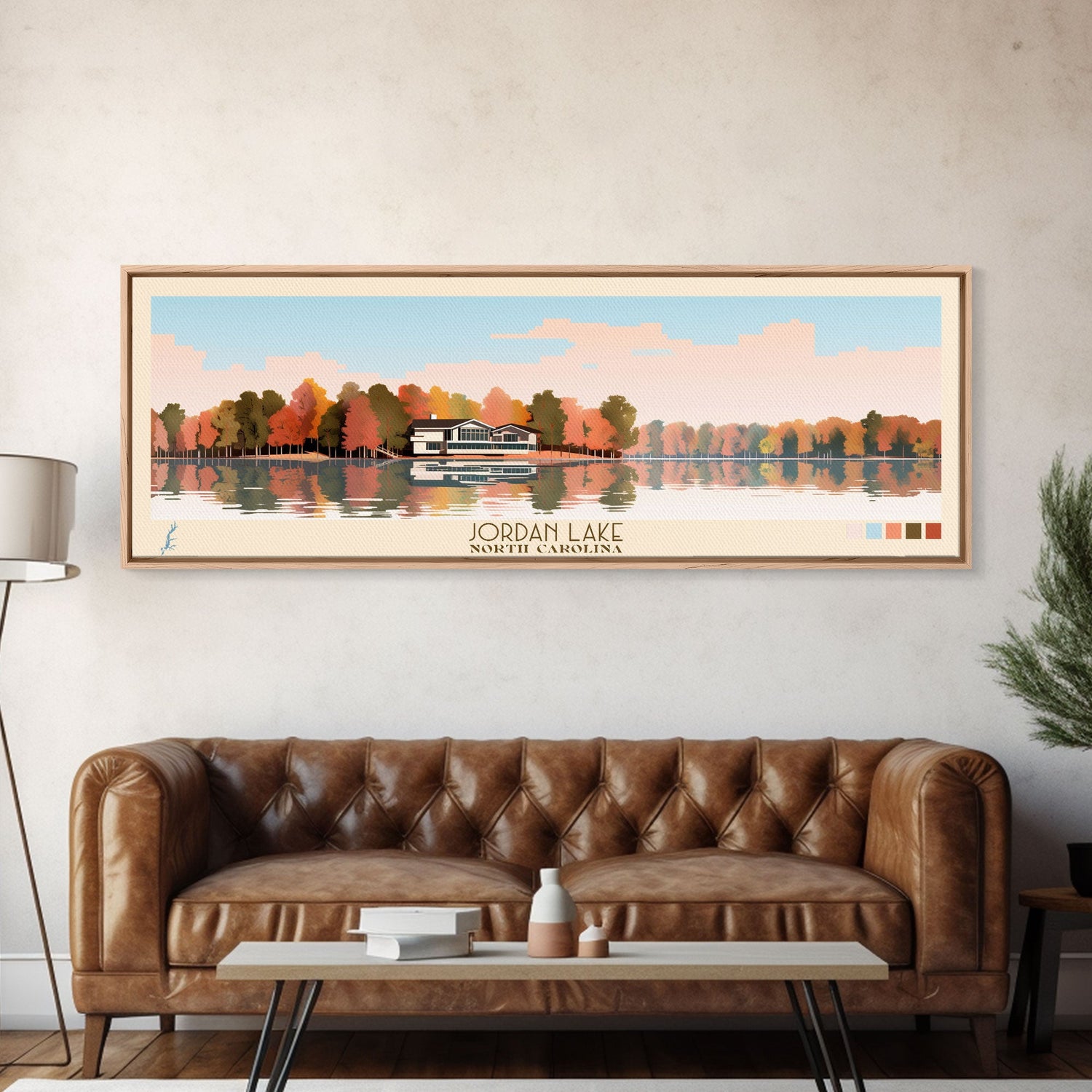 Jordan Lake North Carolina Framed Canvas Print, Panoramic Art, Midcentury Modern, Pop Art, Lake House Decor, Travel Poster, Living Room Art