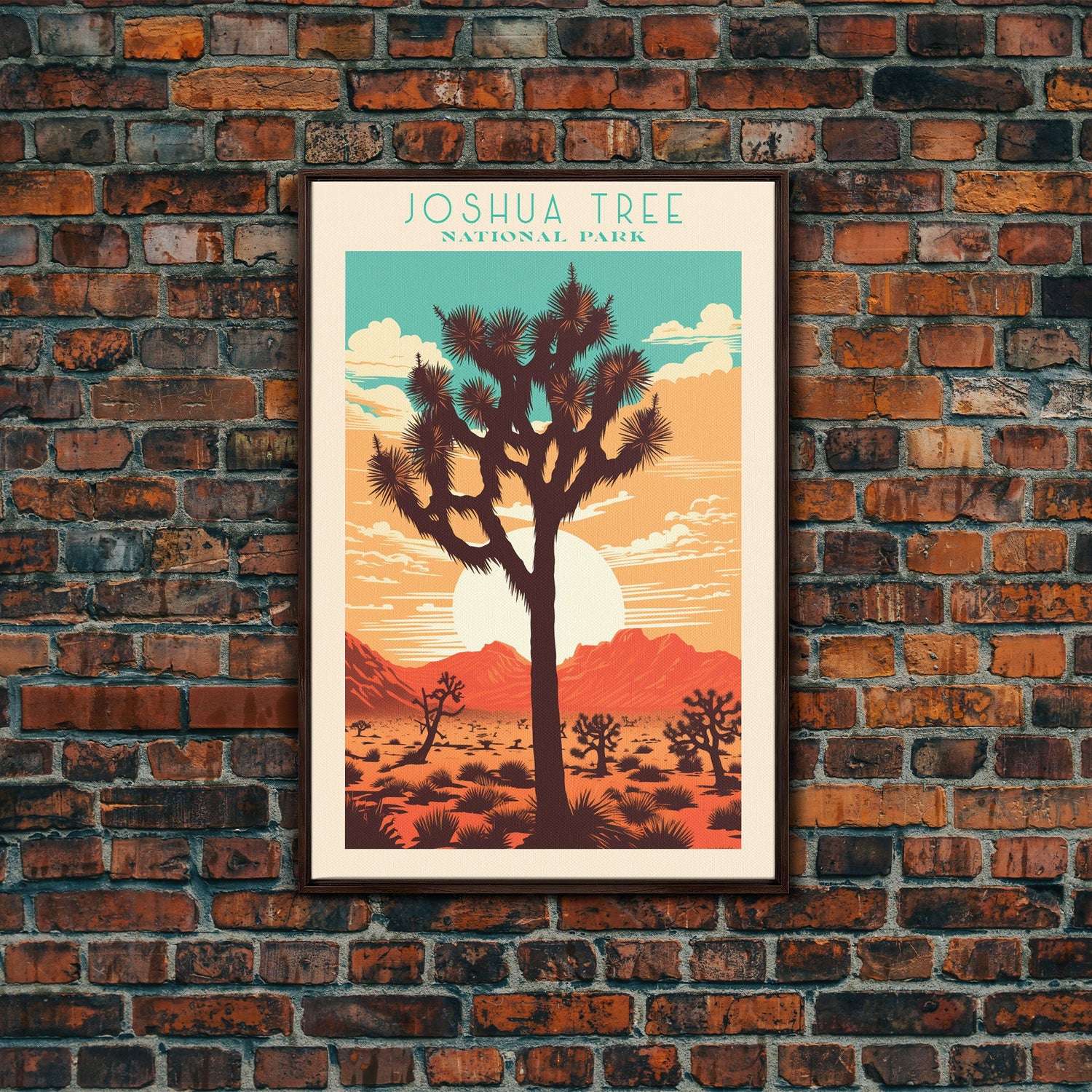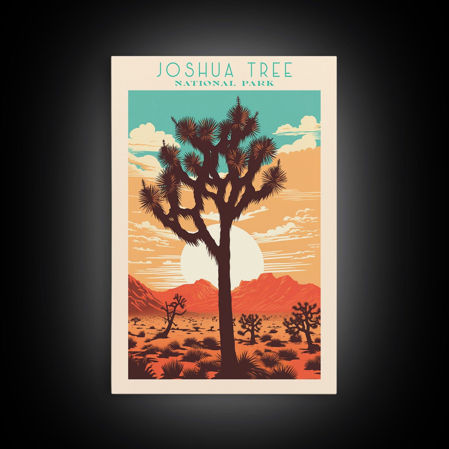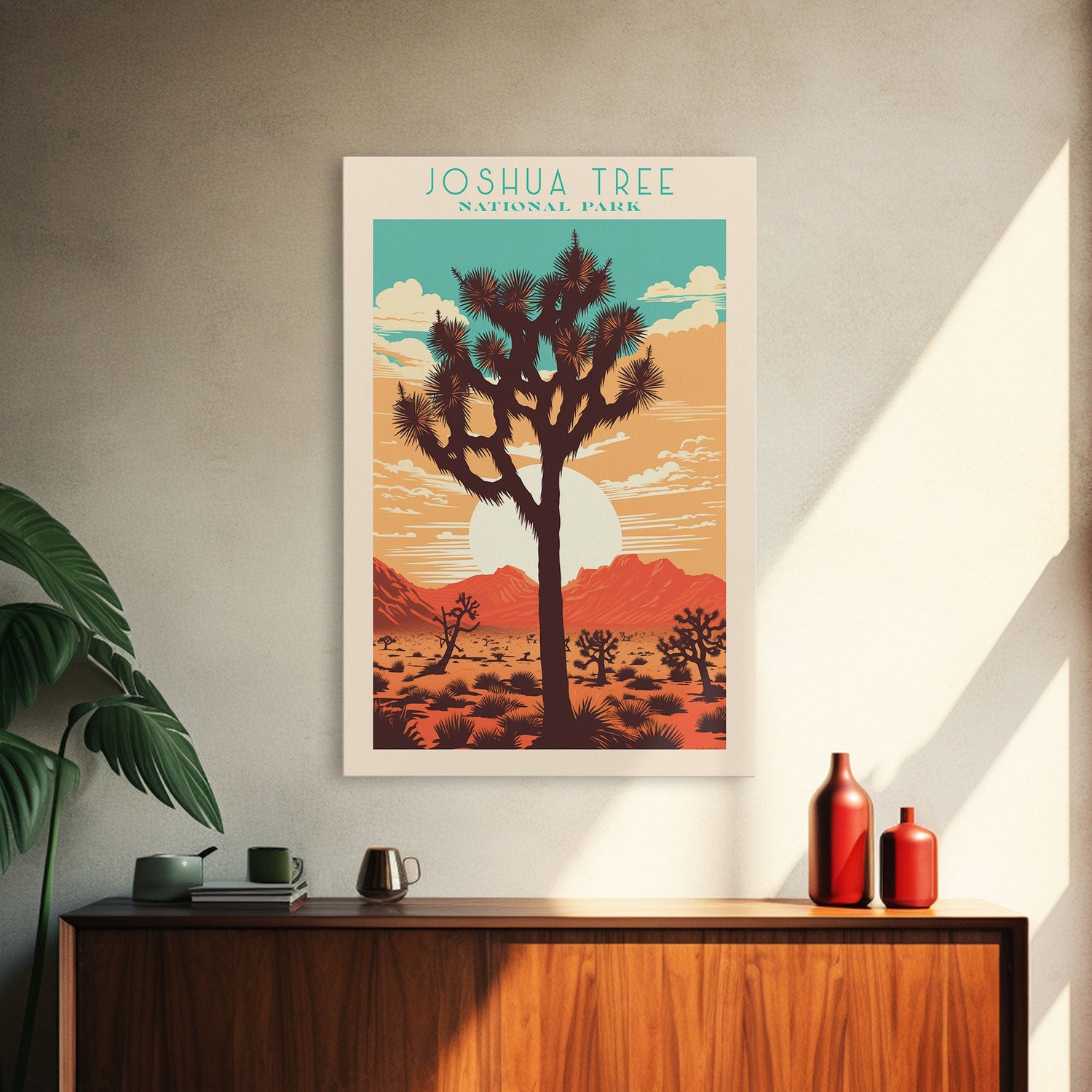 Joshua Tree National Park, California Travel Art, National Park Print, Minimalist Travel Art, Midcentury Modern Retro Style Landscape - 8x12 Inches / No Frame - Stretched Canvas Only is backordered and will ship as soon as it is back in stock.