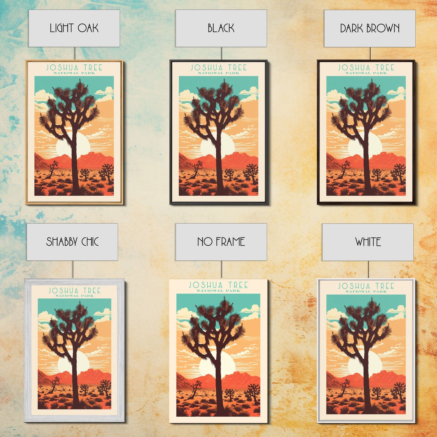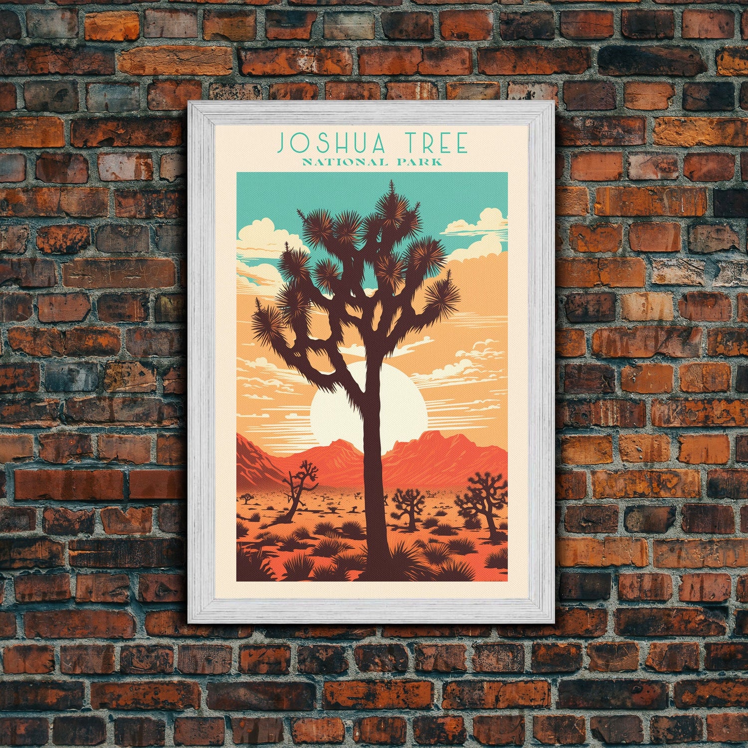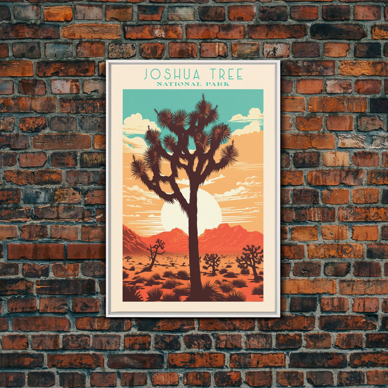 Joshua Tree National Park, California Travel Art, National Park Print, Minimalist Travel Art, Midcentury Modern Retro Style Landscape - 8x12 Inches / No Frame - Stretched Canvas Only is backordered and will ship as soon as it is back in stock.