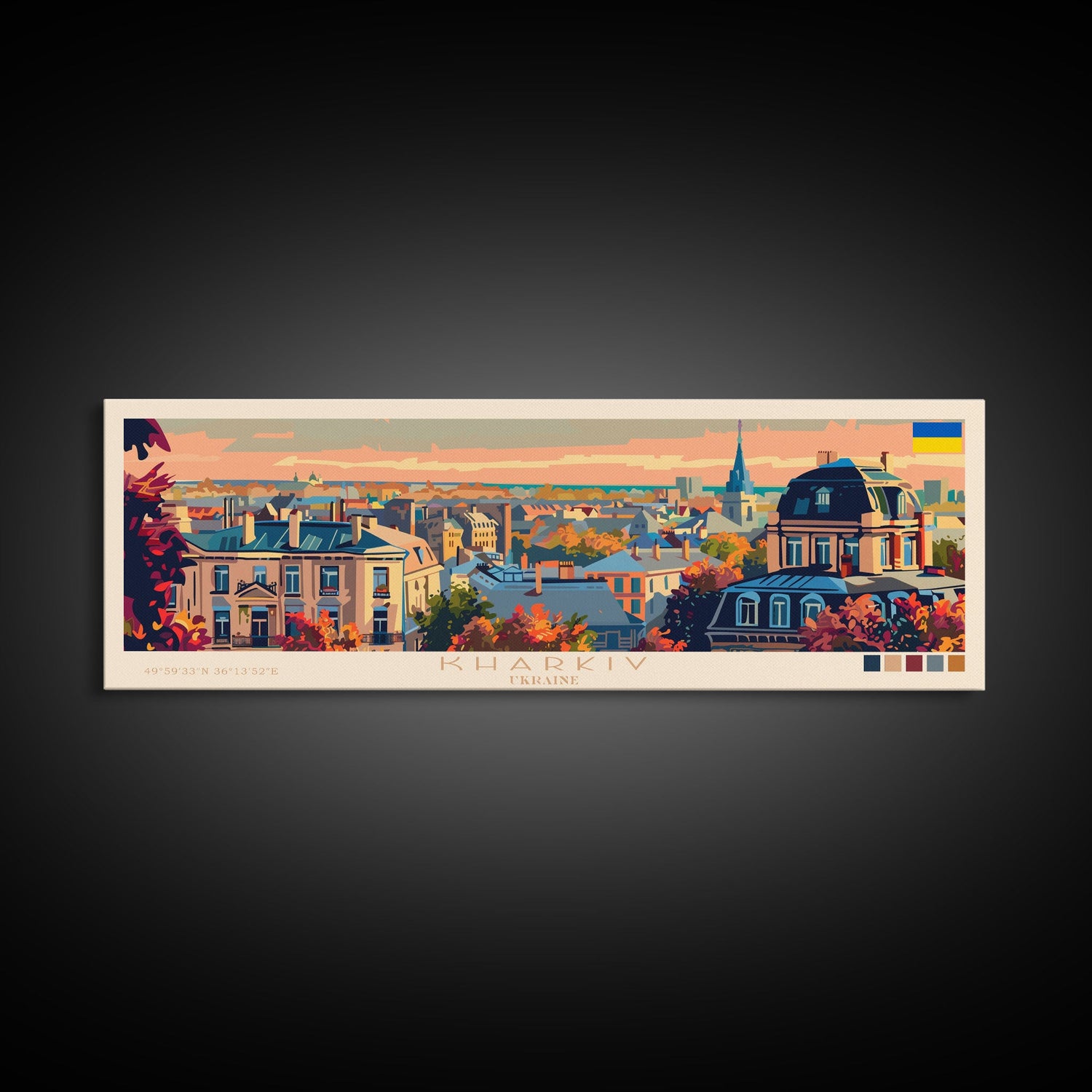 Kharkiv Ukraine Panoramic Travel Poster, Framed Canvas Print or Metal Wall Art, Travel Art, Home Decor, Panoramic Painting, Midcentury Art