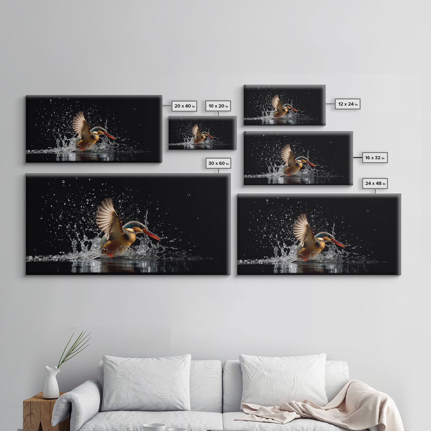 Kingfisher Wall Decor, Bird Wall Art, Nature Wall Decor, Animal Wall Art, Panoramic Wall Decor, Canvas Print, Wall Art, Framed Canvas Art