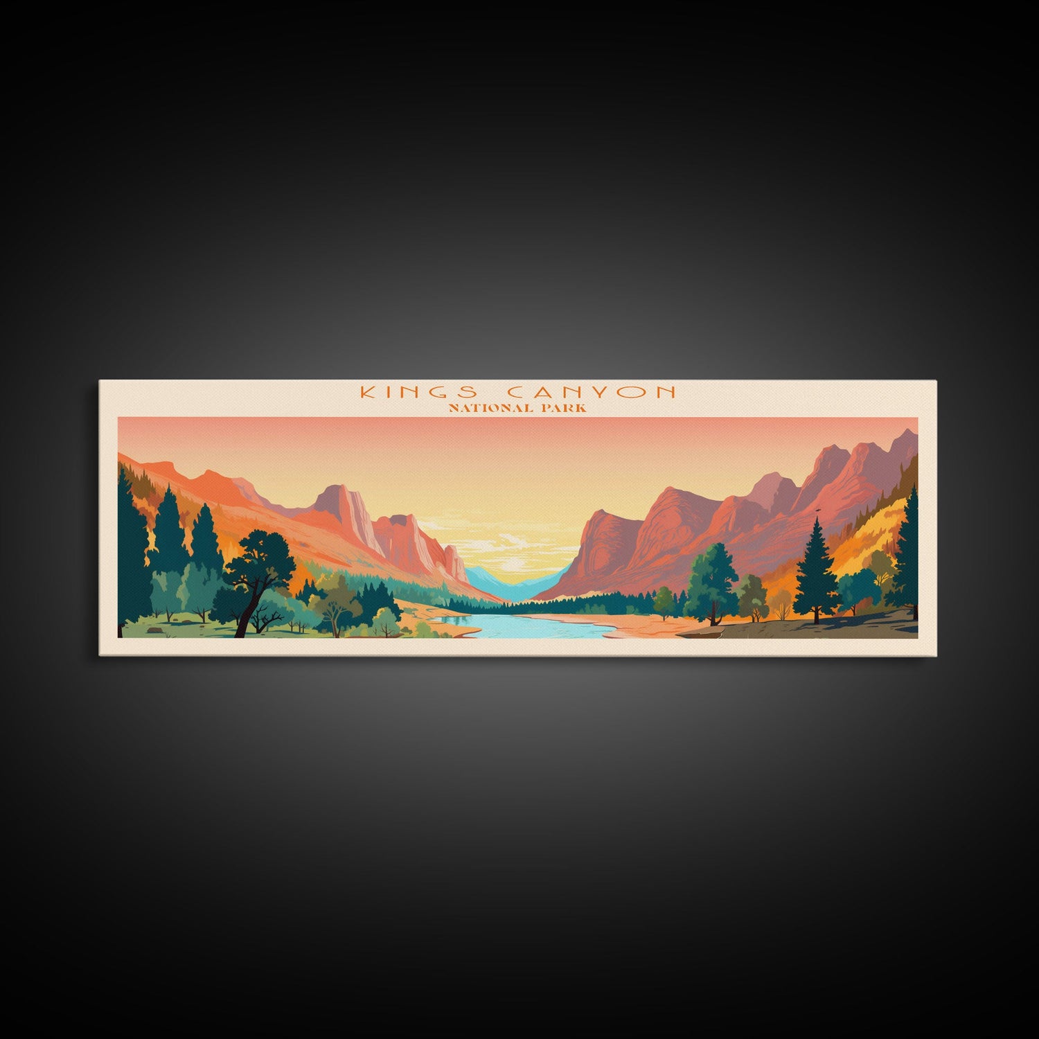 Kings Canyon National Park, Panoramic California Travel Art, National Park Print, Minimalist Travel Art, Midcentury Modern Style Landscape - 10x30 Inches / No Frame - Stretched Canvas Only is backordered and will ship as soon as it is back in stock.