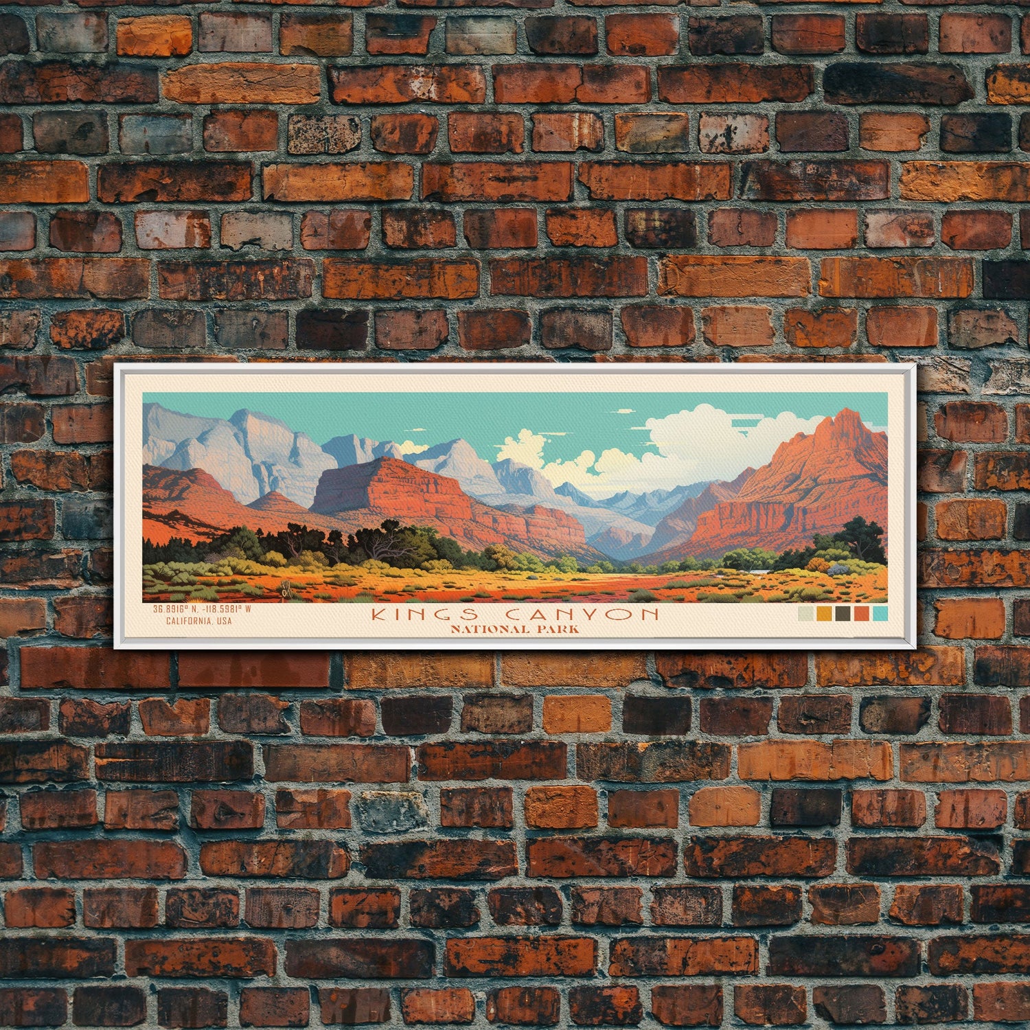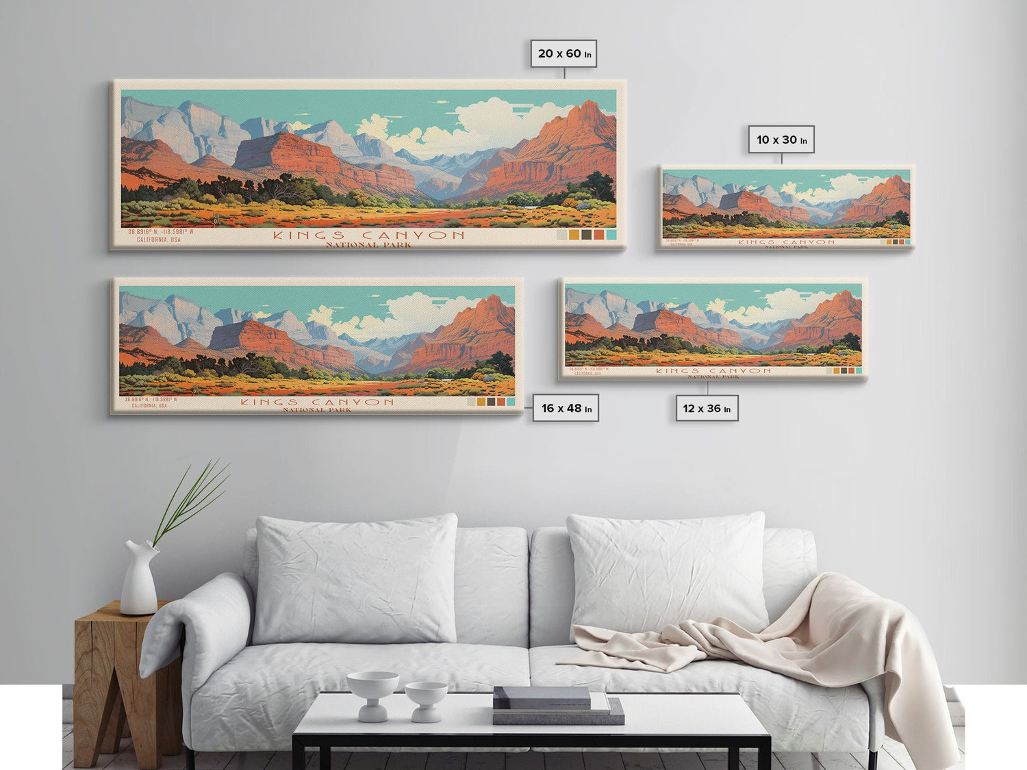 Kings Canyon National Park, Panoramic California Travel Art, National Park Print, Minimalist Travel Art, Midcentury Modern Style Landscape - 10x30 Inches / No Frame - Stretched Canvas Only is backordered and will ship as soon as it is back in stock.