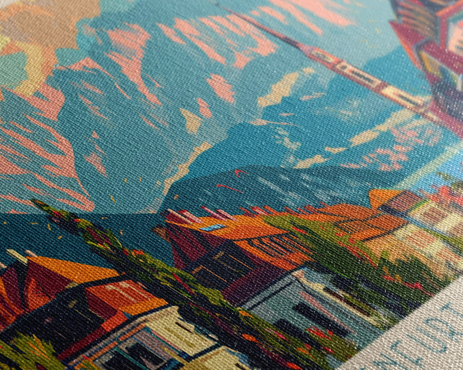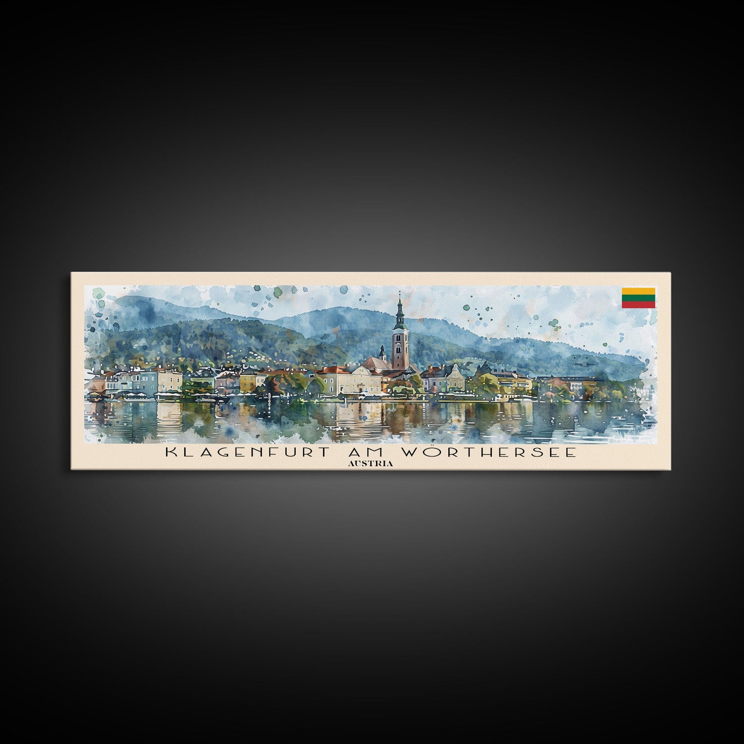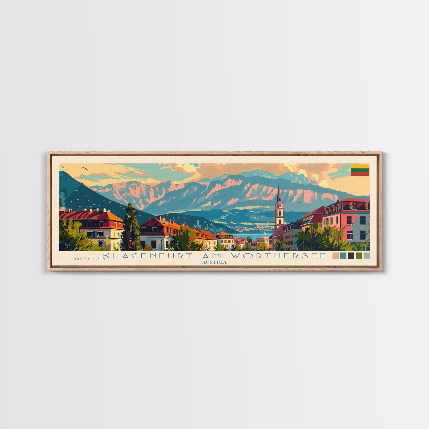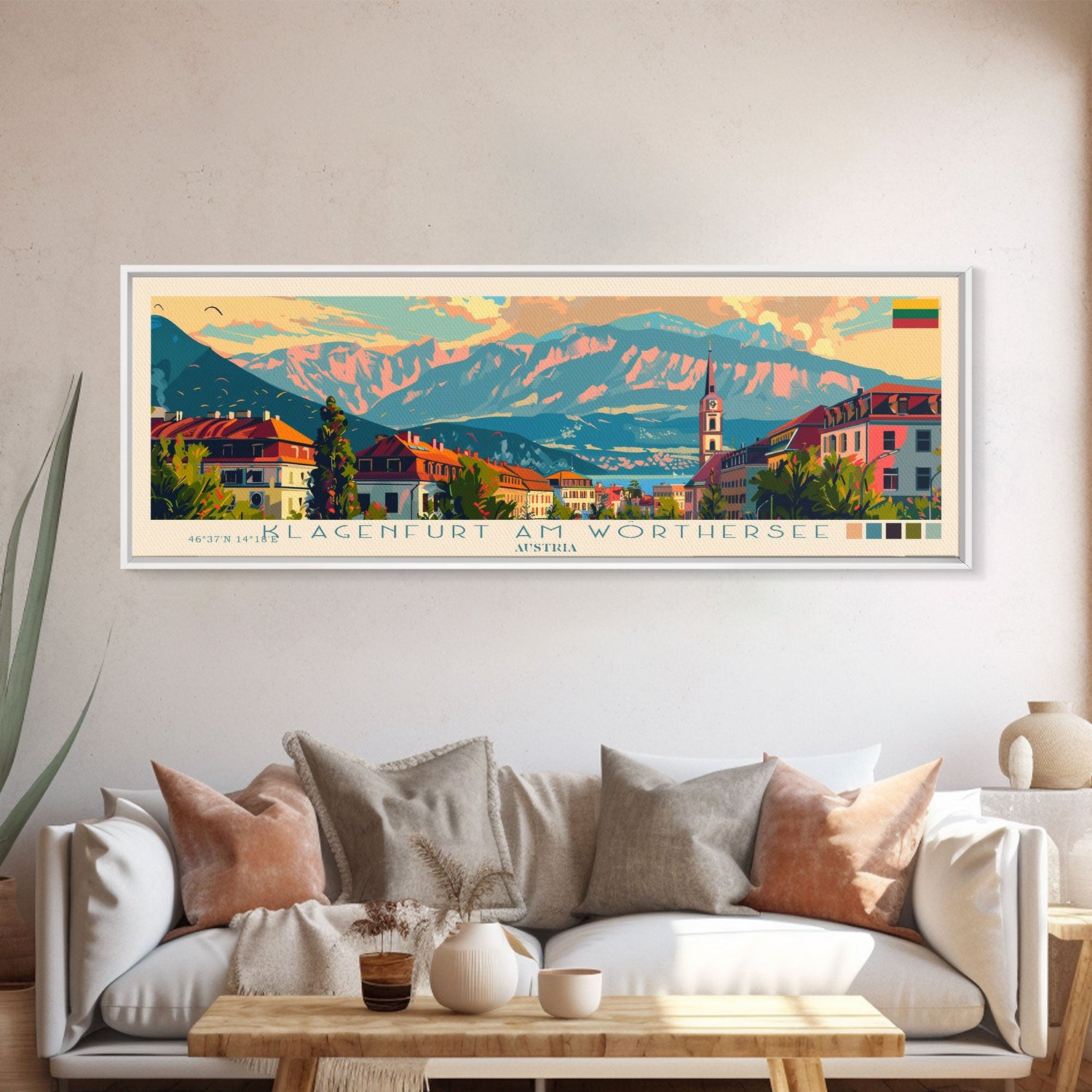 Klagenfurt Austria Panoramic Travel Poster, Framed Canvas Print or Metal Wall Art, Travel Art, Home Decor, Panoramic Painting, Midcentury Art